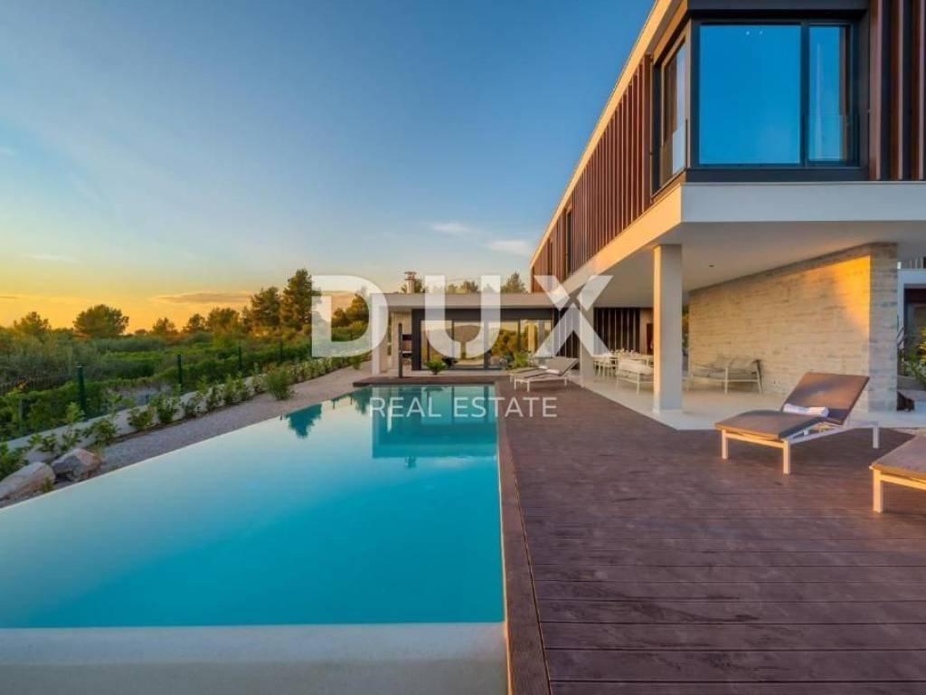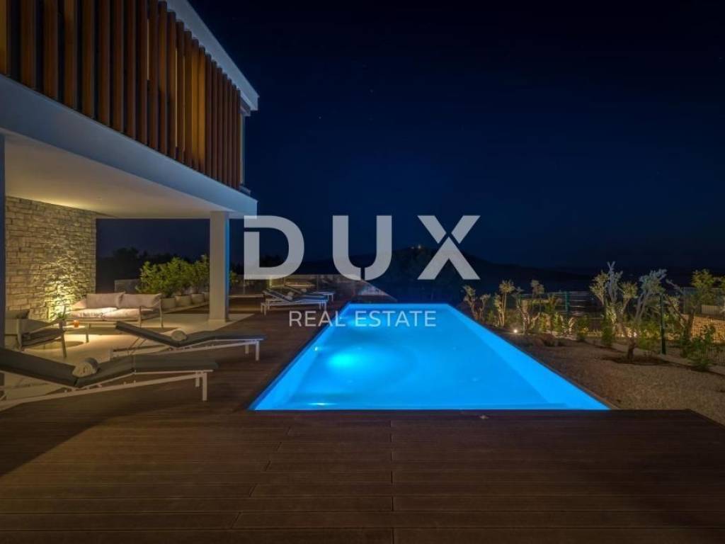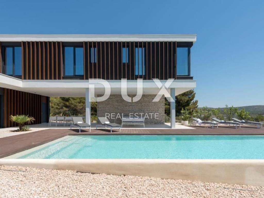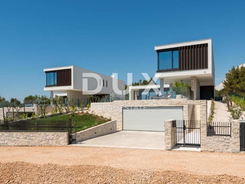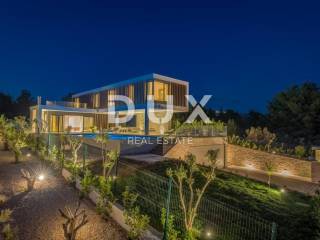 We offer for sale this exceptional villa with an overflow pool in the area of Primošten, contemporary modern architecture, with a wonderful view of the sea and islands. The 300m2 villa is spread over 850m2 of land and consists of a garage in the basement, ground floor and first floor. On the ground floor there is a kitchen, dining room, guest toilet, laundry/storage room and a spacious living room with access to a beautiful terrace with a swimming pool and sunbathing area, barbecue. Internal stairs lead to the first floor where there are 4 bedrooms, each with its own bathroom. The villa offers peace, privacy, and is ideal for living, but given its attractiveness, it is also very promising for tourist rental. The distance from the sea is 700 meters as the crow flies, 500 meters from the town center, and 40 km from Split airport. Dear clients, the agency commission is charged in accordance with the General Business Conditions: www.dux-nekretnine.hr/opci-uvjeti-poslovanja