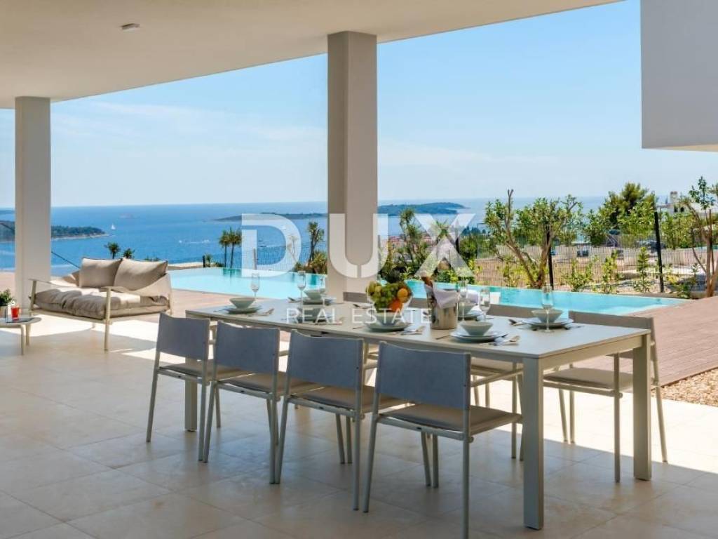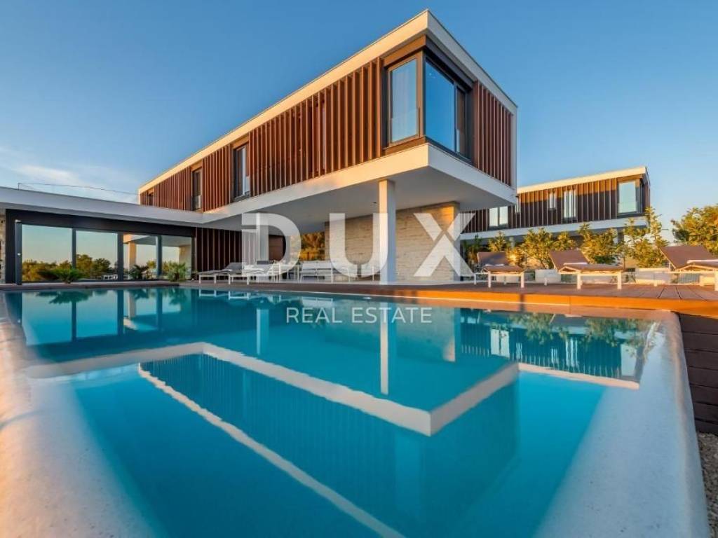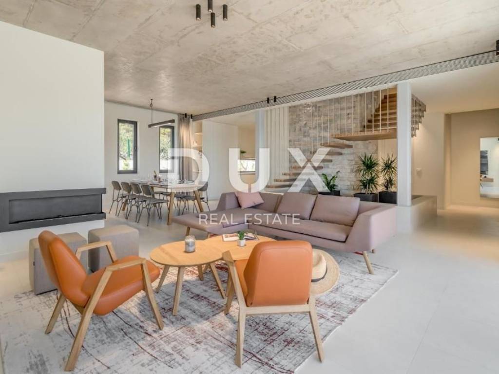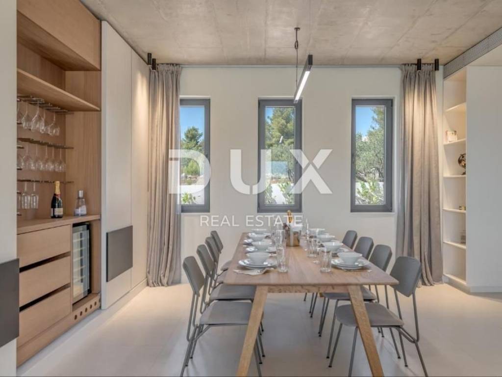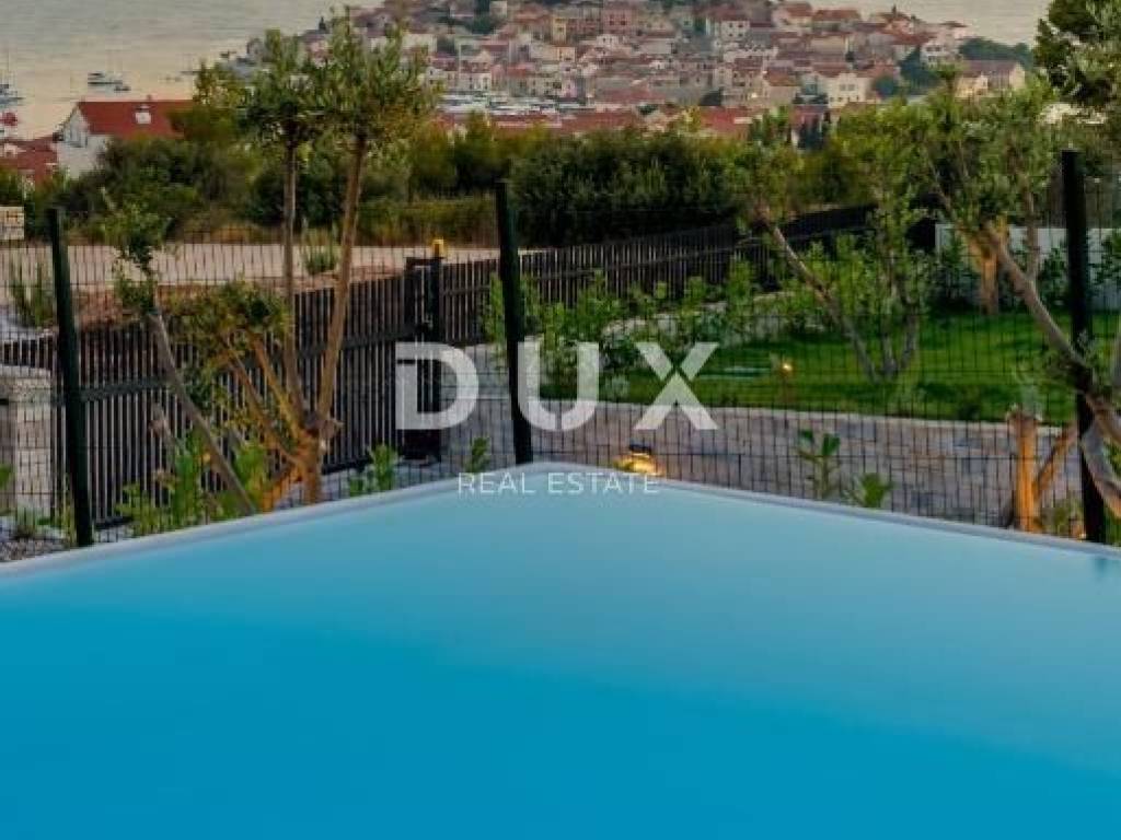 We offer for sale this exceptional villa with an overflow pool in the area of Primošten, contemporary modern architecture, with a wonderful view of the sea and islands. The 300m2 villa is spread over 850m2 of land and consists of a garage in the basement, ground floor and first floor. On the ground floor there is a kitchen, dining room, guest toilet, laundry/storage room and a spacious living room with access to a beautiful terrace with a swimming pool and sunbathing area, barbecue. Internal stairs lead to the first floor where there are 4 bedrooms, each with its own bathroom. The villa offers peace, privacy, and is ideal for living, but given its attractiveness, it is also very promising for tourist rental. The distance from the sea is 700 meters as the crow flies, 500 meters from the town center, and 40 km from Split airport. Dear clients, the agency commission is charged in accordance with the General Business Conditions: www.dux-nekretnine.hr/opci-uvjeti-poslovanja