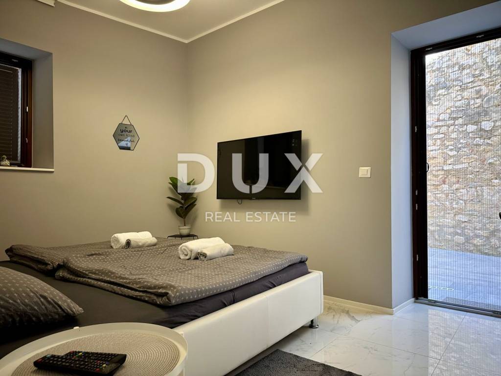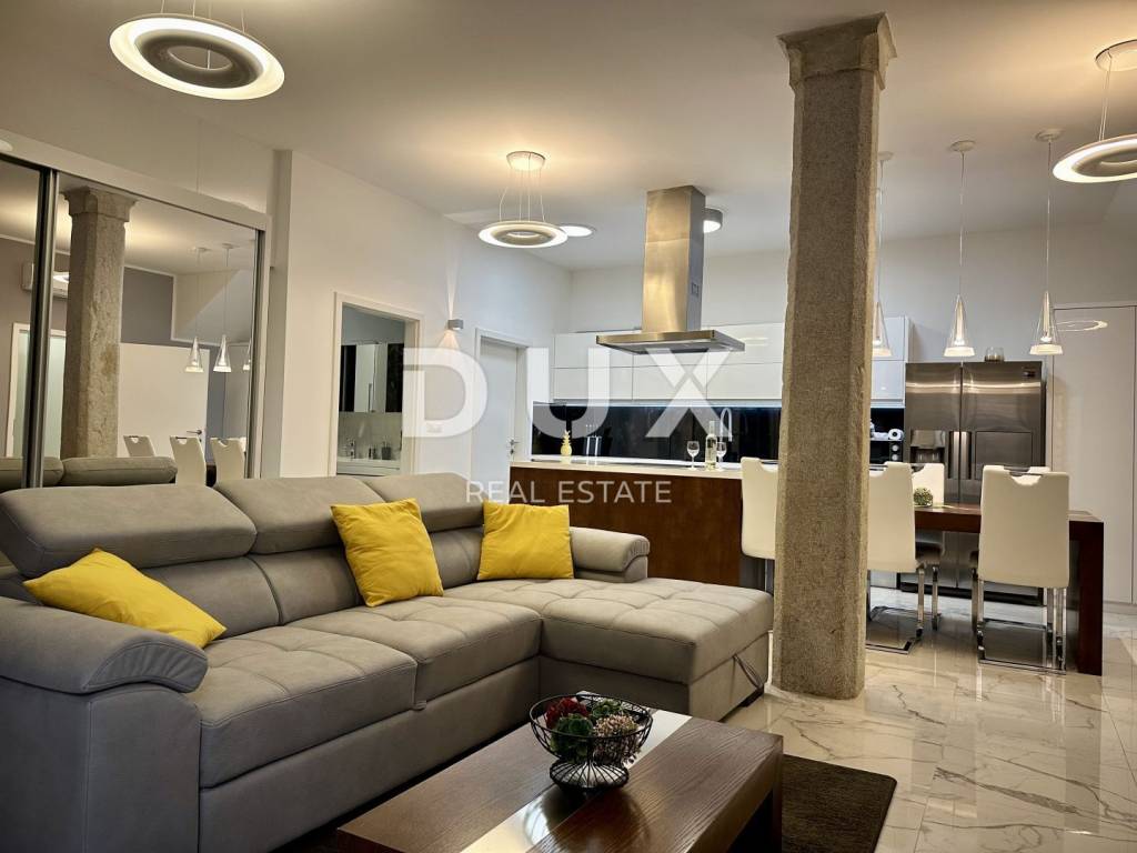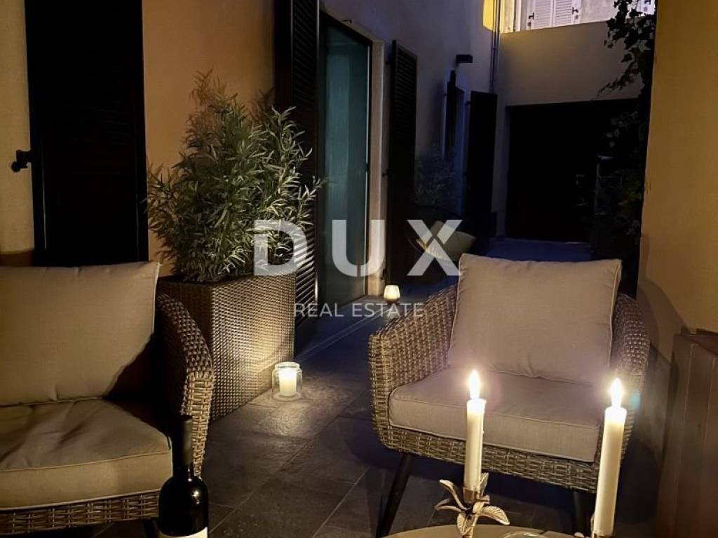 ISTRIA, POREČ - Apartment on the ground floor in the city center The coast of Poreč is 37 km long, where there are 21 beaches with the Blue Flag - a symbol of clean sea. The most prominent are the Lotosi beach, the city swimming pool and Pješčana uvala, which are characterized by clear sea and a rich offer of entertainment and recreational content. The coast of Poreč offers boat owners an inexhaustible source of research while they can anchor their vessel in one of the well-equipped Poreč marinas. For those who want to have fun, the terraces of the city are filled with various activities almost every day in the summer. You can also visit fishing festivals, exhibitions and fairs of indigenous products. As part of the gastronomic offer, traditional Istrian cuisine accompanied by excellent wines and local olive oil is essential. We offer an apartment of 106.83 m2 located in the picturesque old town of Poreč. This beautiful apartment offers a mix of historic charm and modern luxury. It consists of: Staircase - 6.10 m2 Hallway - 5.30 m2 Wardrobe - 4.20 m2 Bathroom 1 - 4.40 m2 Bedroom 1 - 17.58 m2 Living room with kitchen and dining room - 44.50 m2 Bathroom 2 - 14 m2 Bedrooms 2 - 10.75 m2 The apartment also has a spacious terrace with a summer kitchen. This special property is only 100 m from the sea, and is just a few steps away from many other interesting facilities. Dear clients, the agency commission is charged in accordance with the General Business Conditions: www.dux-nekretnine.hr/opci-uvjeti-poslovanja