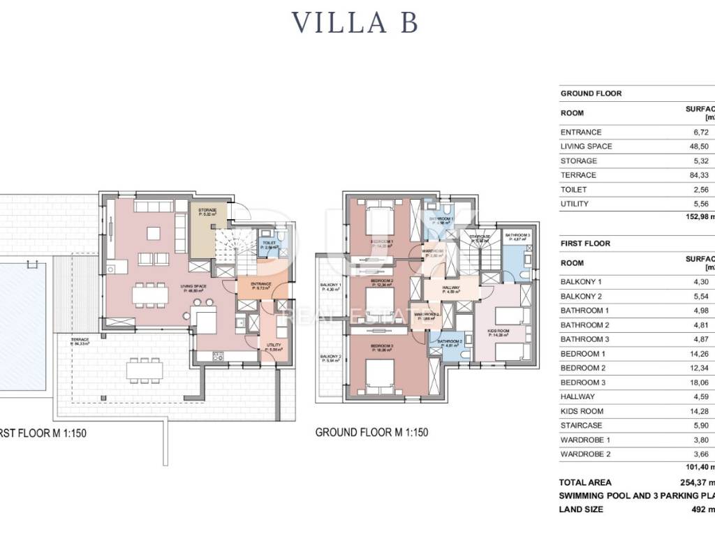 We proudly present to you a unique property that is rarely found on the market! The villa we are selling is located right next to the coast, in the quiet town of Stara Novalja, on the island of Pag. It consists of a spacious living room with a kitchen and dining room, a storage room, a toilet and a spacious terrace, while on the first floor there are 4 bedrooms, three bathrooms, two wardrobes and two balconies. The villa is positioned on a plot of 492 m2. It has 3 parking spaces. In the yard, next to the terrace, there is also a beautiful and spacious swimming pool. In the resort, which is located in a unique location by the sea, there are 6 luxury villas, the design of which has been carefully thought out and chosen because innovative elements of modern architecture and the traditions of the region meet. Regardless of whether you decide to explore the surroundings, sunbathe on the beach or by the pool or simply enjoy the space of the house, you will surely feel this special magic of the island of Pag and Stara Novalja. This is a place where you can escape from the everyday hustle and bustle and indulge in relaxation in luxurious villas that are like a home away from home. Such properties offer numerous investment opportunities, they can be thematized in various ways, as a spa resort, a place to shoot fashion editorials, a getaway for famous people, even as an exclusive music studio for work and relaxation... the possibilities are numerous because the location and beauty of the island of Pag is incredible. The island of Pag is located in the northern Adriatic, in Croatia. It is the fifth largest Croatian island, and with its unique moon shape, it is one of the most popular islands in the Adriatic. The capital of the island is Pag, while Novalja is a famous tourist center on the west coast of the island. The island is famous for salt, sheep's cheese and lamb. It is also known for its characteristic stone beaches, the most famous of which is Zrće beach. The villa we are selling is designed based on contemporary aesthetics and functionality, with clean lines and minimalist elements. Using traditional stone preserves the authenticity of the place. The villa will be equipped with everything necessary for a complete experience. Modernly designed rooms, spacious bedrooms, comfortable large terraces and a swimming pool are just some of the features that make you feel at home. The villa has a view of the sea and is in its immediate vicinity. ACCESS: A small road passes through the settlement, which will be accessible only to villa owners. Each villa has two comfortable parking spaces with preparation for electric car charging. ECOLOGY: The villas will be of energy class A. The thickness of thermal insulation on the facades will be 15 cm. The windows, with triple glazing, will be equipped with electric blinds, operate in isolation and have nets to protect them from bugs and mosquitoes. The villas will be heated and cooled by air conditioners. VILLA EQUIPMENT The villas are equipped with burglar-proof and soundproof entrance doors, TV connections in all rooms, with cooling and heating with air conditioners and blinds for sun protection. Special attention was paid to the selection of quality and coordinated materials in the villas. Don't miss the chance! These properties are on the market for a short time and now is the right time to take advantage of this rare opportunity and become the owner of a special property or even several. Novalja and Pag are world-famous locations where commercials are shot by the biggest stars and brands, and you can't go wrong with this kind of investment. The villas will be unfurnished, but upon request, we can do the interior decoration for you at an additional cost. Construction is scheduled to be completed in the spring of 2025. Contact us today to learn more and book your tour!