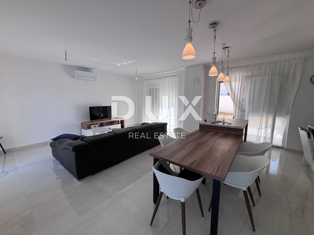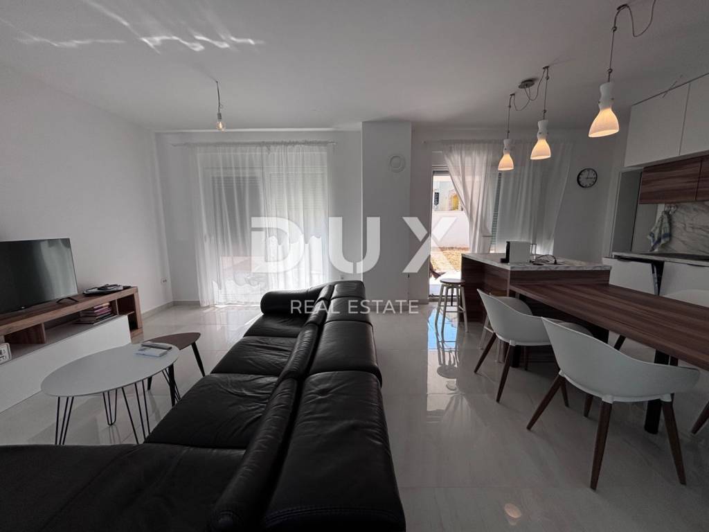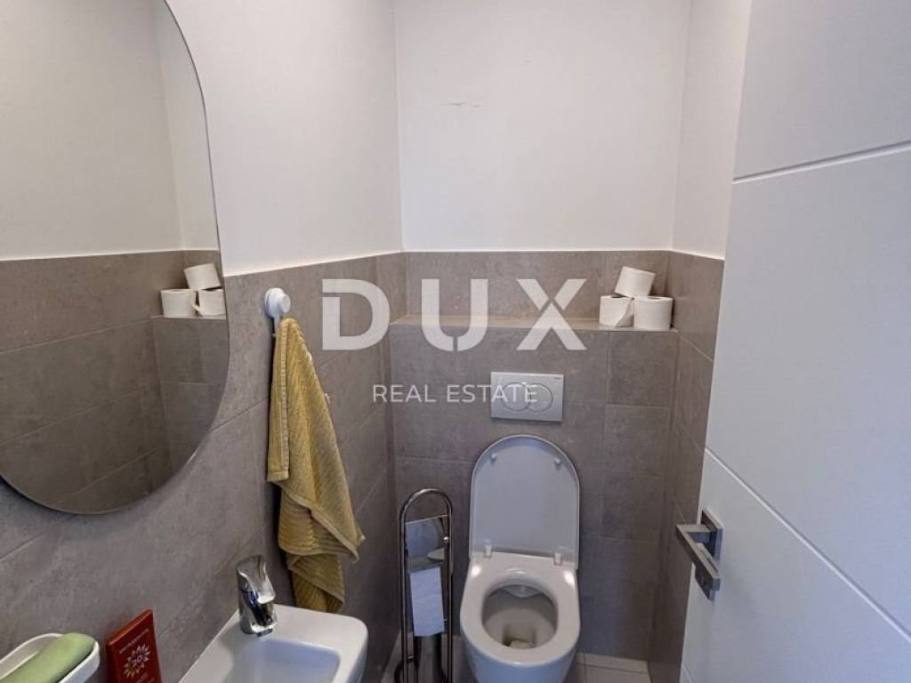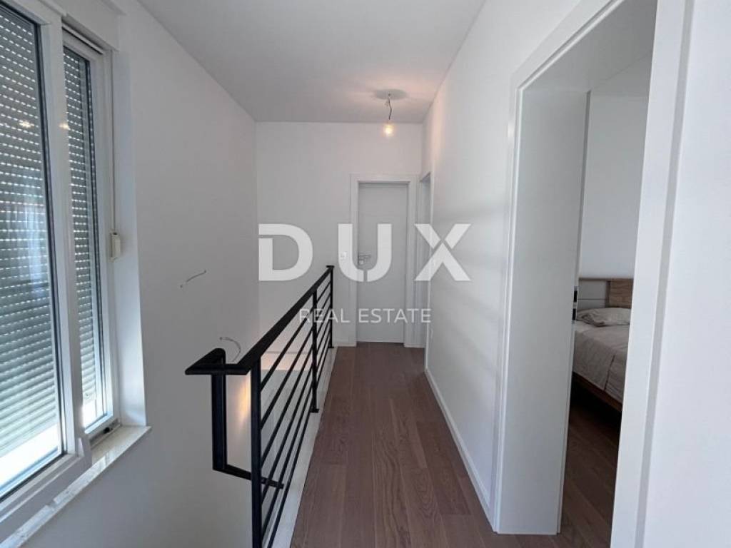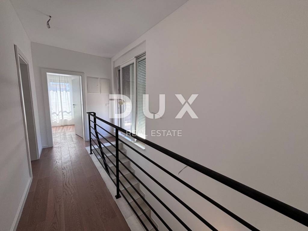 A luxurious, modern house for sale, newly built on the island of Vir in an exceptional location - 100 m away from one of the most beautiful beaches on the island, and the position of the house is additionally attractive because there are streets on three sides of the plot with a total area of 370 m2, while the house itself is on the fourth side more than 3 m from the neighboring house. The house consists of a garage (19.6 m2) and a residential part on the ground floor (residential part 48 m2 + terrace 68.10 m2) and on the first floor (area 53 m2 + balcony 36.10 m2). The ground floor consists of an entrance area, a storage room, a toilet and an open area where the living room, kitchen and dining room are located. The ground floor leads to two spacious terraces, on the south and north. On the first floor there are two balconies with an unobstructed view of the sea, a bathroom and three bedrooms, one of which has its own bathroom and a beautiful view of the sea. The air conditioning system is designed so that each indoor unit has its own outdoor unit. The house has a chimney and underfloor heating in the bathrooms. Among the equipment, we highlight top-quality ceramics (Ceramiche Piemme), first-class parquet made of bleached, brushed oak (Tarkett), Trogir plano stone, Rehau PVC carpentry with blinds and mosquito nets, Laufen and Aquestil sanitary ware, Hörmann garage door with remote control. The flat roof is made with the Draco system, the Benkovac Ben stone is on the facade, thermal insulation is 10 cm and 20 cm thick, which, in addition to the high-quality construction system, enables the A+ energy class. The house will have a swimming pool, and it is possible to park an additional 2 vehicles on the lot. The house offers an unobstructed view of the sea and the island of Pag. The orientation of the house is east-west. The house is being sold completed, and the planned completion of construction is May 5, 2023.