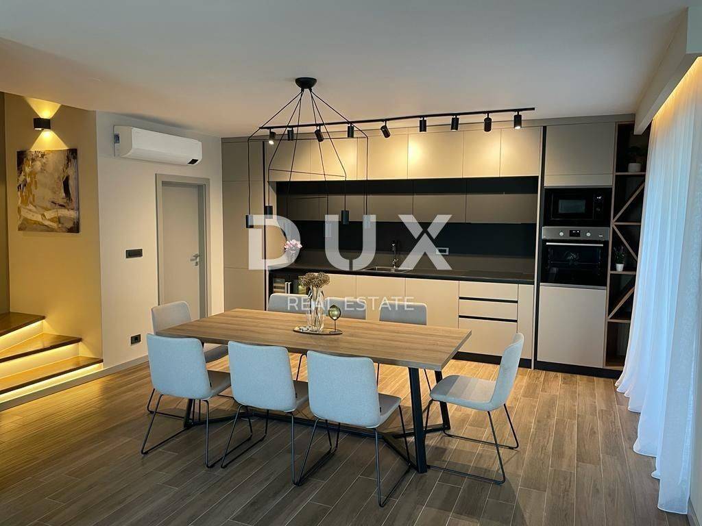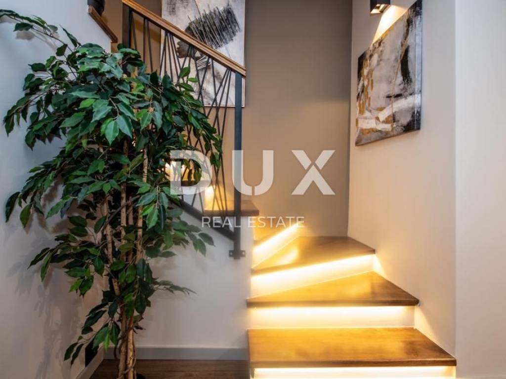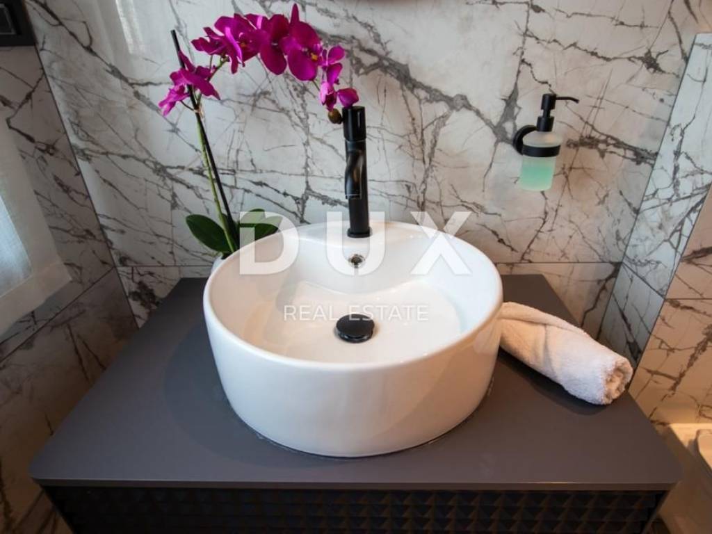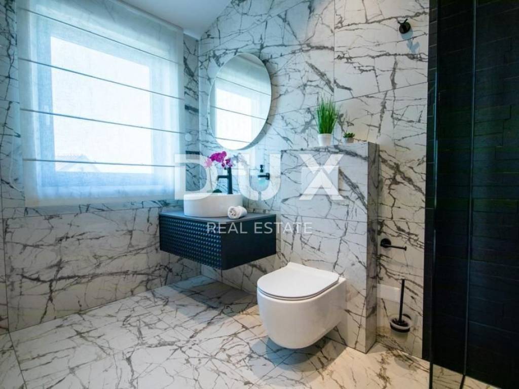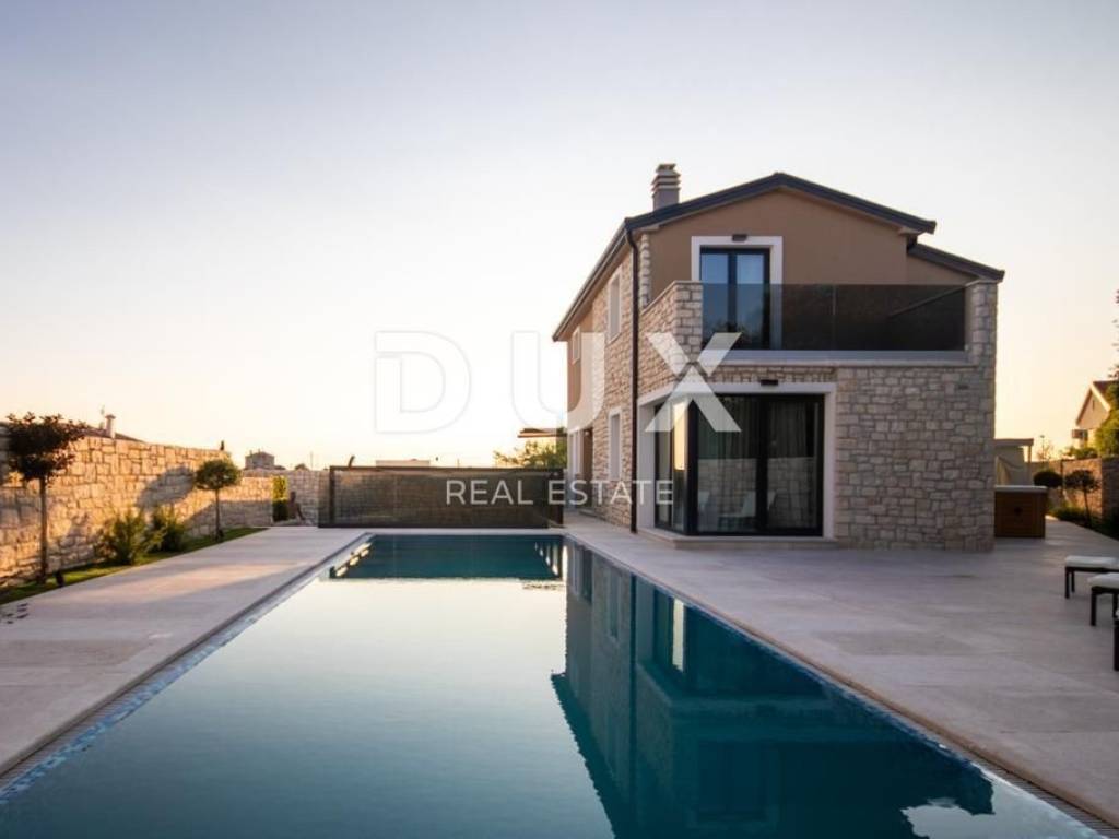 Brtonigla is a municipality rich in natural resources and proud of its untouched nature. It includes the sea coast and the inland, green, Istria. A mild, Mediterranean climate prevails in the territory of the municipality, which enables a pleasant stay throughout the year. Most of the active population of the municipality is engaged in agriculture, and the primary products of high quality are wine, olives and olive oil, cheese, fish, truffles, meat, Istrian prosciutto, vegetables, unique fragrant and aromatic herbs. Another basic economic branch in the municipality is tourism. There is also the second best aquapark in Europe. Located on a plot of approx. 400 m2, this spacious villa offers a total living area of 146.42 m2. The ground floor of the villa enchants you as soon as you step inside - it extends through an entrance hall, a guest toilet, two storage rooms (one inside and the other with access from the outside), a comfortable bedroom with a private bathroom and a terrace with a jacuzzi, and a spacious living room with a dining room and a high-quality modern kitchen in an open space concept. From the living room, there is a direct exit to the terrace and sunbathing area with a swimming pool, creating an idyllic corner for relaxation and enjoyment. We climb the stairs to the first floor of the villa, which includes a hallway and three elegantly decorated bedrooms, each with its own luxurious bathroom. Two bedrooms have access to spacious balconies. The furniture in the rooms is of high quality, and the air conditioners ensure comfort. Heating and cooling are provided by five quality air conditioners, while radiators are installed in the bathrooms. There is an option to install a fireplace as an additional source of heat. Italian designer ceramics are spread throughout the house, while the staircase is lined with wood. Anthracite-colored PVC carpentry contributes to the elegant look of the space, and custom-made furniture takes care of every detail. Video surveillance and an alarm system ensure the safety of the facility. The house has never been used and will not be rented out, which is an added advantage. In the exterior, the lighting in the garden, the stone fence, the infinity pool with a mosaic surface, the system of electrolysis of salt water and preparation for heating the pool, and the jacuzzi for complete relaxation are enchanting. Additional amenities include a landscaped garden, preparation for a summer kitchen, an electric portun and two parking spaces. Perfectly located near shops, restaurants, schools and kindergartens, this house offers quick access to nearby beaches, allowing the owners to enjoy all the benefits of Mediterranean life. This villa represents an excellent opportunity for family life, a luxurious vacation from the stress of city life in the Mediterranean climate or as a financial investment for rental. Dear clients, the agency commission is charged in accordance with the General Business Conditions www.dux-nekretnine.hr/opci-uvjeti-poslovanja