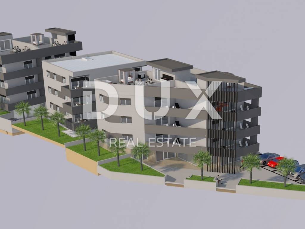We are selling this top-class apartment S-6 penthouse, (Building A) located on the second floor of a new residential building with six residential units. The apartment is basically a three-room apartment with a living room with a total living area of 132.27 m2. It consists of an entrance hall, a living room with a kitchen and a dining room, with access to a balcony-terrace, three bedrooms, two bathrooms, a laundry room and a storage room. The balcony staircase leads to the roof terrace of 100 m2, which can be further arranged and used according to the customer's needs. The owned apartment has one outdoor parking space. There is a possibility to purchase a garage parking space and a storage room. The apartments will be sold in the turnkey phase, while the planned period of construction and occupancy is expected in the first quarter of 2025. Options when buying an apartment: 1. Apartment reservation during construction, pre-sales agreement, payment of 20% when signing the pre-agreement, the rest when the apartment is ready to move in with the handover of the keys. 2. Purchase during construction in 5 equal installments with a 10% discount, the last installment is paid immediately before moving in. 3. Purchase during construction, payment of 80% of the price of the apartment upon signing the preliminary contract with a 20% discount, the remaining amount is paid immediately before moving in. An exceptional and peaceful location only 100 meters from the sea, beaches and surrounding facilities. Excellent price-quality ratio and the location itself give this property an advantage. An opportunity not to be missed. All 3 buildings were built using a quality construction system and consist of an anti-seismic reinforced concrete structure. Internal walls and ceilings are made with finely smooth surfaces with millimeter tolerance. The external walls are well insulated with 10 cm of thermal insulation, and contain, in addition to classic plaster, water-repellent finishing plaster in color. All buildings have an A+ energy certificate. All apartments are equipped with high-quality PVC windows and doors with electric ALU blinds and roller mosquito nets. The external carpentry is installed in accordance with the RAL system and insulated, and gas-filled ISO glass is installed. Each apartment has a separate water and electricity connection with sufficient power according to the area of the apartment. The electrical installations are made according to the highest standard, and contain a modern series of switches and sockets manufactured by TEM Modul. Internal and external lighting is solved with LED technology. Each apartment has the possibility of connecting its own telephone and Internet connection, but it can also use a common Internet connection. Each building has video surveillance, and apartment owners get access. Heating and cooling is solved using high-quality air conditioners separately in each apartment. Hot water is heated using its own water heater in each apartment. Sanitary facilities and sanitary equipment are installed from renowned European manufacturers, and are ready for use. The apartments are not equipped with furniture except sanitary ware and sanitary equipment in the bathrooms. High quality porcelain ceramic tiles are installed in the bathrooms. The floors in each apartment are equipped with high-quality porcelain ceramic tiles, and the floors in the rooms are equipped with a water-repellent material similar to wood imitation laminate. Penthouse apartments in building A and C are additionally equipped with underfloor heating in the entire apartment, which is powered by a heat pump. Hot water is heated using solar systems on the roof and an electric boiler. The floors are completely equipped with porcelain ceramic tiles in the rooms as well. Each penthouse apartment has its own exit to the roof terrace, which can be used for private purposes. Dear clients, the agency commission is charged in accordance with the General Business Conditions: www.dux-nekretnine.hr/opci-uvjeti-poslovanja