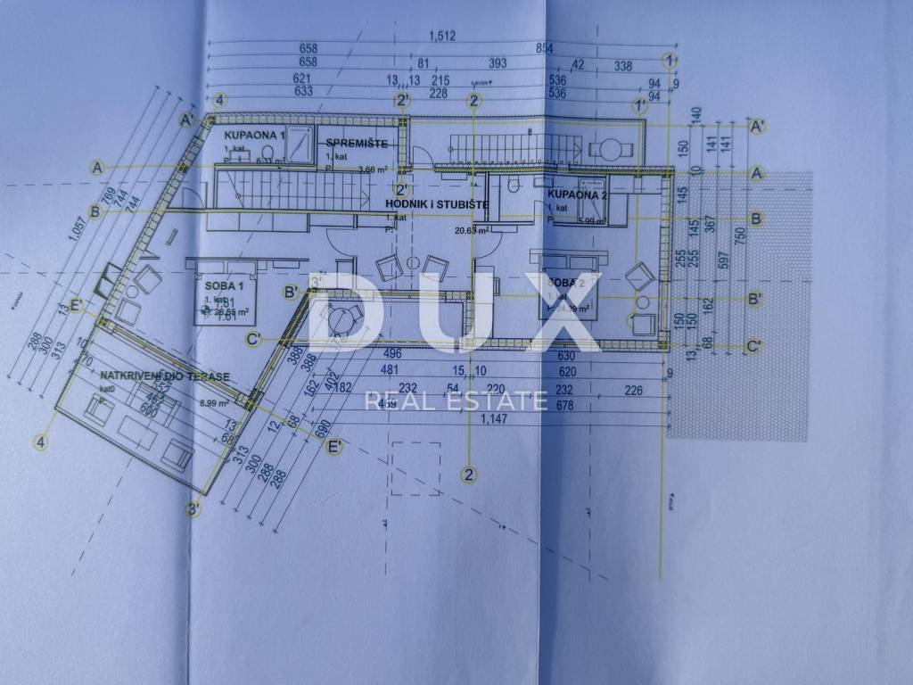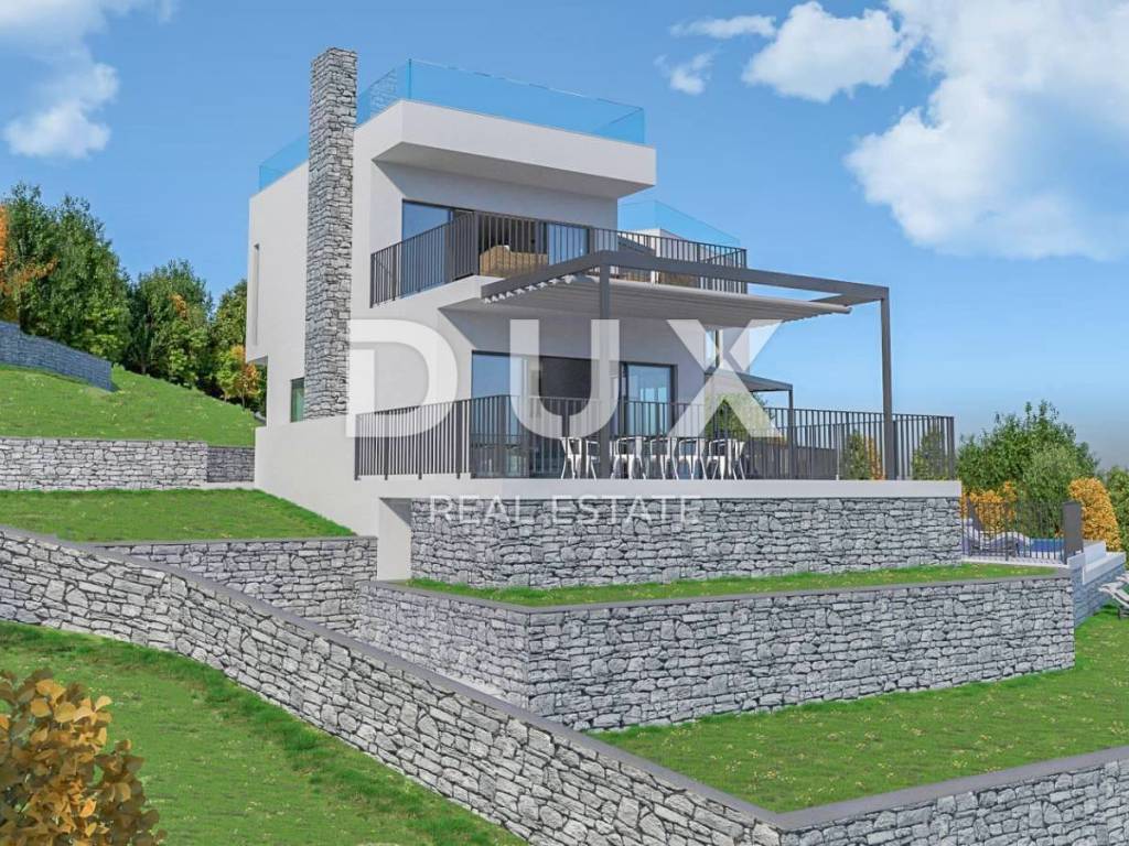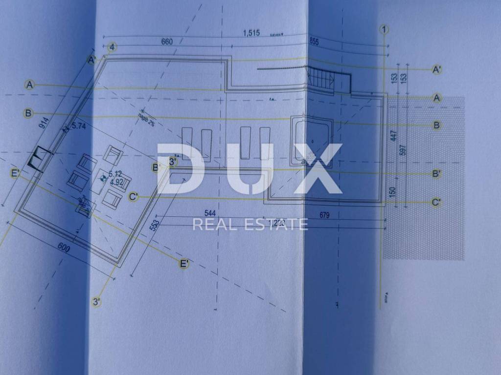 In a beautiful location above Ičići beach, there is an extremely attractive building plot with an already approved building permit for the construction of a house. This property offers an ideal opportunity to create your dream home. The planned house has an extremely well-designed layout, with a garage and basement space that provide additional functionality. The ground floor is designed as an open space living room with an integrated kitchen and bedroom, while there are two additional spacious bedrooms upstairs. Every corner of this house has been carefully planned to make the most of natural light and the open sea view that extends from all sides. The house project also includes a roof terrace with a jacuzzi and an open view of the sea. A total of 2400m2 of land provides enough space for enjoyment and opportunities for additional activities. Of this, 2000m2 is agricultural land, which can be used as a luxurious private garden and space for leisure. Terrain characteristics are gentle height configurations, which means that there is no need for major earthworks. The land is cleared and ready for construction, which facilitates the process of realizing your project. The location of the land is extremely favorable. The distance from the sea is only a 5-minute drive, while it only takes 12 minutes to get to Opatija. The Učka tunnel is also easily accessible, with a distance of only 7 minutes by car. This combination of proximity to the sea and the city, along with a peaceful environment surrounded by greenery and beautiful family houses, makes this property extremely desirable for family life or as an investment opportunity. Dear clients, the agency commission is charged in accordance with the General Terms and Conditions. https://www.dux-nekretnine.hr/opci-uvjeti-poslovanja
