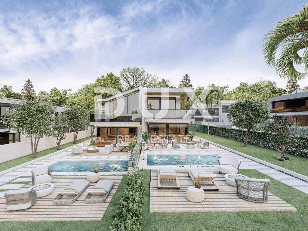 Umag is a city on the west coast of Istria with a Mediterranean climate, and along its 45 km of coastline, it provides the best introduction to a different experience of the Mediterranean. The history of this city is very interesting. Roman nobles discovered it and decided to appropriate it as a summer residence. The splendor and opulence of those times are reflected even today in the Venetian houses of the old city center. The development of tourism is directly related to the development of agriculture - the fertile soil is particularly suitable for the cultivation of olives, tomatoes and vines, as well as other crops characteristic of the Mediterranean climate. And when it comes to the gastronomic offer, there are excellent seafood and meat specialties and local Istrian cuisine. Umag has also been declared the European City of Sports and is traditionally the host of many sports events at the world level, of which the ATP Croatia Open tennis tournament should definitely be singled out. Just a few minutes' drive from Umag, this luxury villa is for sale located in a 5* resort. Welcome to an oasis of luxury and relaxation, welcome to this beautiful semi-detached villa, perfectly located just 100 meters from the shore of the magical sea. This unique property will delight you with its luxury and comfort, with a total area of 193.84 square meters and a beautiful terrace of 18.11 square meters, located on an enchanting plot of 357 square meters. The ground floor welcomes you with an impressive entrance hall that leads to a spacious kitchen with a dining room, creating a perfect place for family gatherings and enjoying gastronomic magic. In addition, the ground floor offers a comfortable bathroom and a practical pantry, perfect for organizing and storing all your necessities, and one bedroom. On the first floor, the hallway leads you to two spacious bedrooms, each with its own luxurious bathroom. Whether you want to enjoy a peaceful sleep or relax in a convenient location after a busy day, these rooms will provide you with the perfect private space for relaxation. Set aside time for yourself and use your terrace, where you can enjoy a wonderful view of the surroundings and feel the breeze from the sea. This villa also comes with a lavish swimming pool and an enchanting garden, which take your breath away with their beauty and magical ambiance. Enjoy refreshing moments of swimming in the pool or simply relax with the sounds of nature in the garden. Since the villa is located in the resort, the future owners have access to a whole range of facilities, including a wellness center, spa, children's playground, outdoor gym and everything a high-end resort has to offer. Here you will find everything you need for a balanced and luxurious lifestyle. In addition to its impressive appearance, this property stands out for its quality construction, which is the foundation of beauty and durability. Regardless of your wishes and needs, this luxury villa will not disappoint you, but will exceed all your expectations in terms of stylish and comfortable living space. So, stop and pause, because this double villa is waiting just for you. Bring your dreams and make them come true in this paradise of luxury and comfort. Come and discover the magic of this property, sail into your own idyllic world of comfort and relaxation. The advantage of new customers is that they can enjoy it carefree even when they are not at the location, because the resort will take care of the maintenance and arrangement for the future owners, and they have the option of renting their villa to them if the customers wish. The property is subject to VAT. Dear clients, the agency commission is charged in accordance with the General Business Conditions www.dux-nekretnine.hr/opci-uvjeti-poslovanja