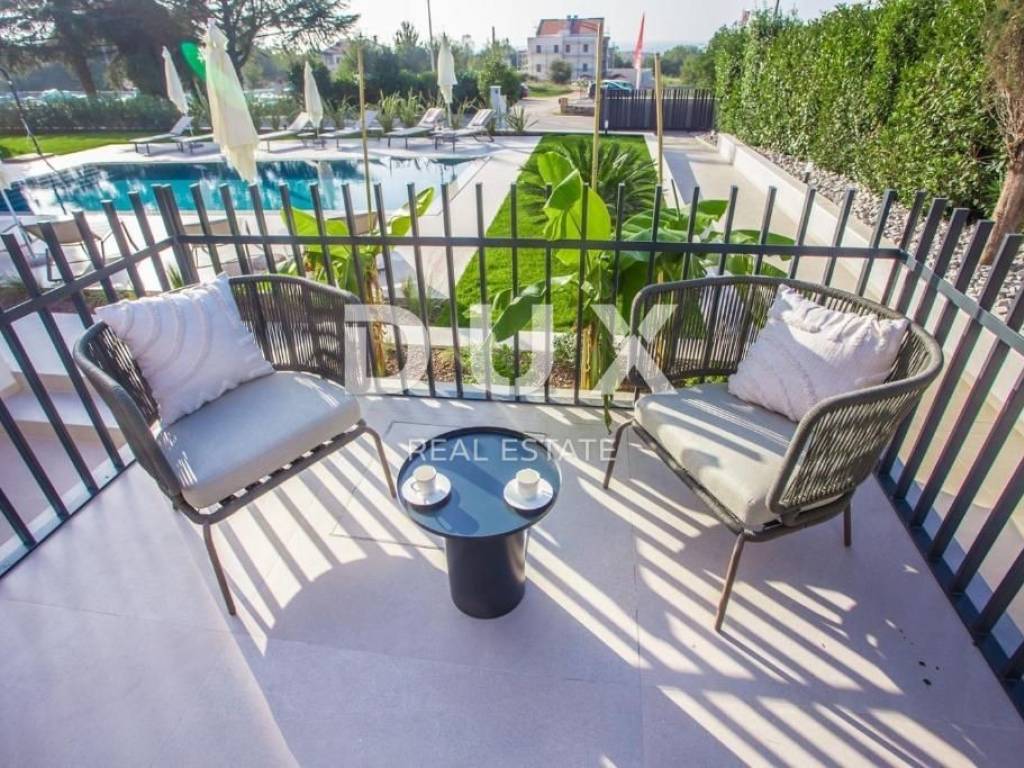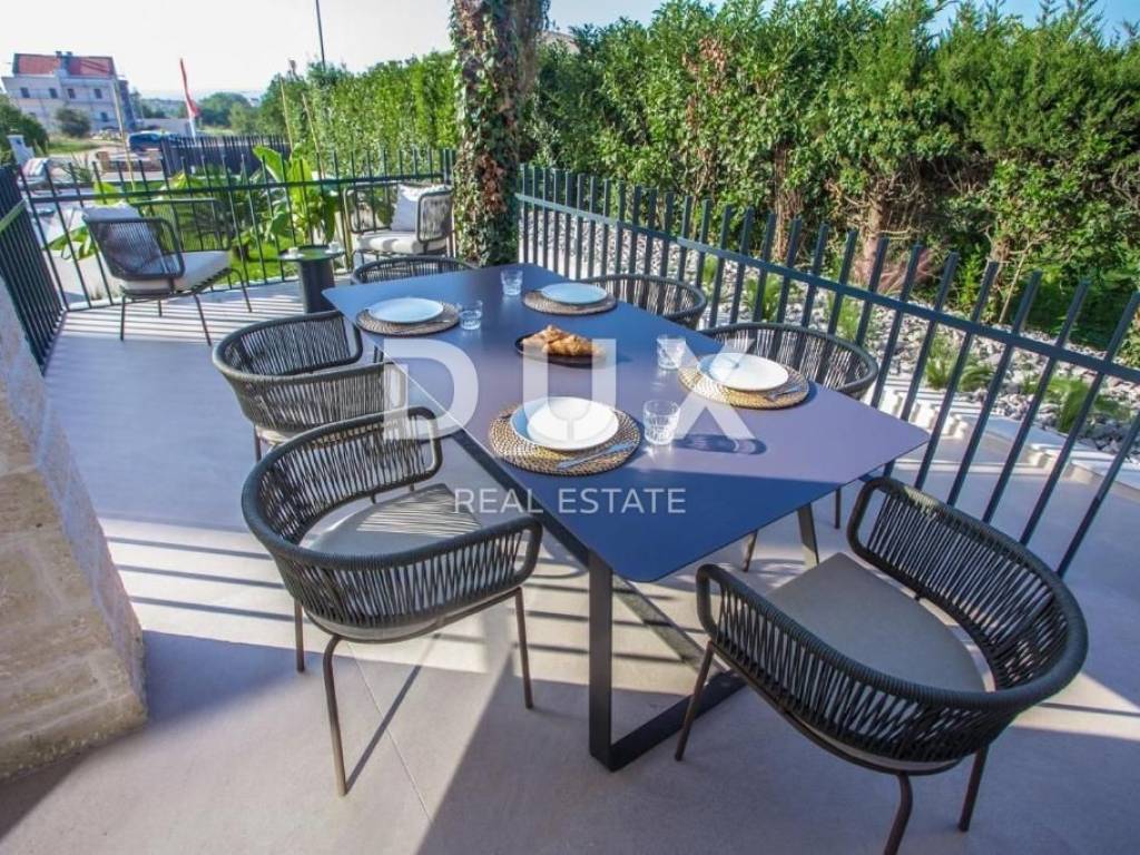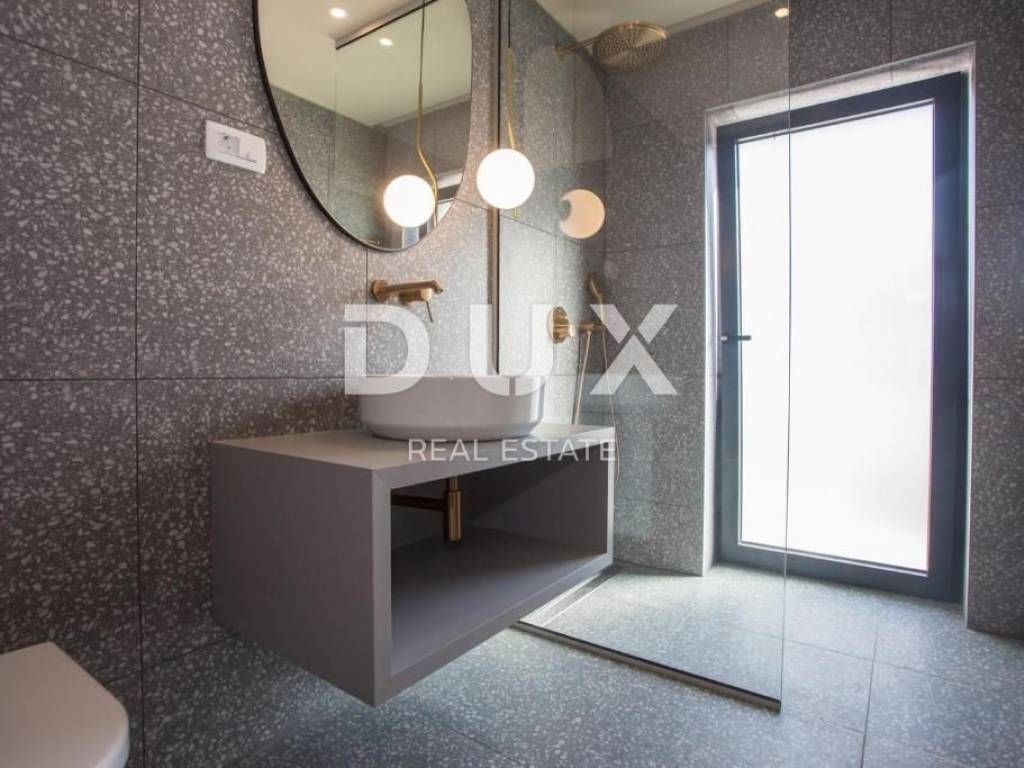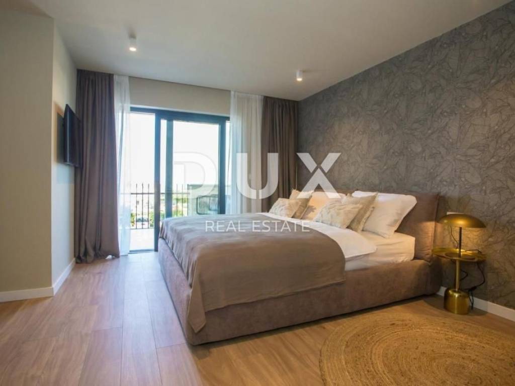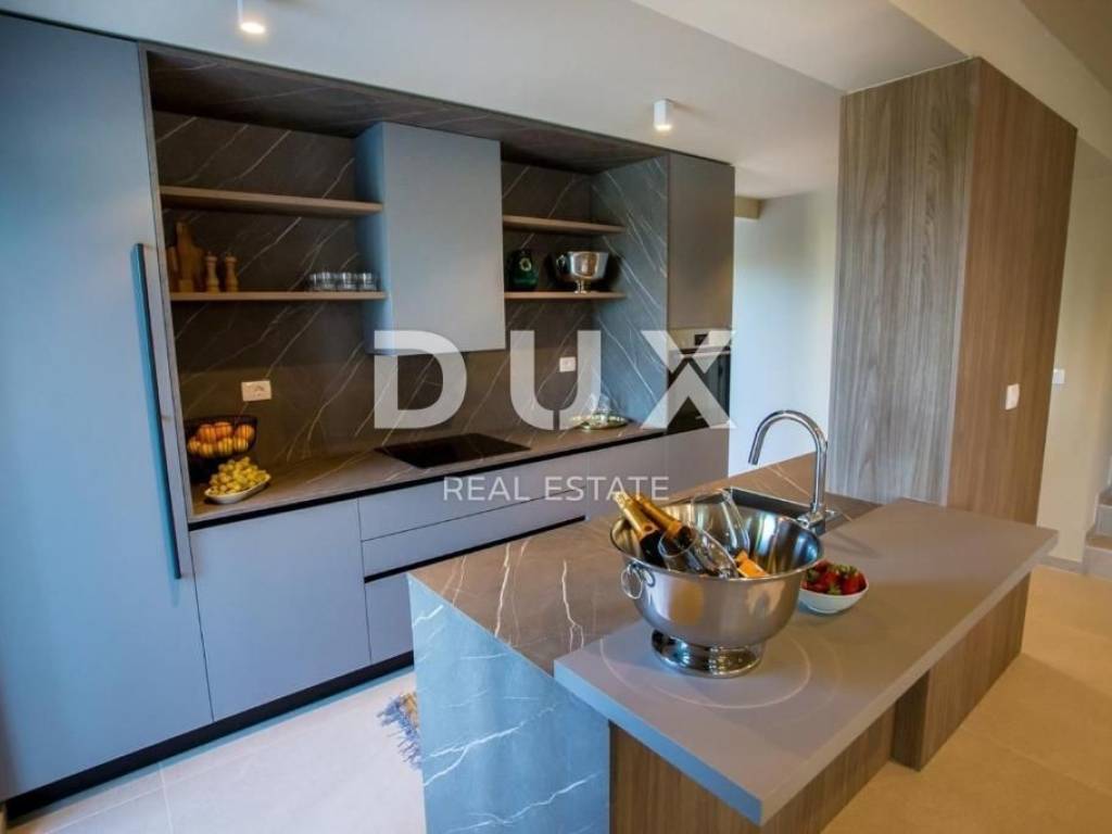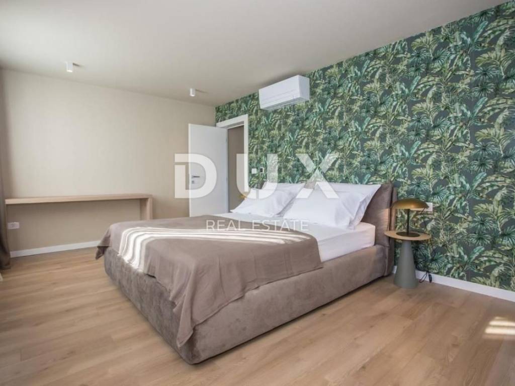 It was founded by the Romans, conquered by the Venetians, and today it represents a chest of historical treasures and cultural heritage covered with modern 5-star luxury. The beauty of the city is hidden by a large number of tourists who enjoy the hospitality and top service of this Istrian pearl every year. For sale is a luxurious villa, located in Poreč, 1 kilometer from the sea and the first beaches. This beautiful property covers 683 m2 of living space divided into three residential units. Each apartment is designed with attention to detail. On the ground floor of each unit there is a bright living room decorated with large glass walls and windows, a thoughtfully designed kitchen with an elegant modern aesthetic, a comfortable sleeping area with a wardrobe, a well-equipped bathroom, an additional storage room, and another decorated bathroom. The second floor of each apartment has two beautiful bedrooms, each with its own private bathroom and a terrace with a beautiful view of the sea. This villa is equipped with video surveillance, and furnished with luxurious Italian furniture and exquisite decorations. The bathrooms are decorated with luxurious Catalano and Grohe sanitary ware, which is an example of commitment to the highest quality standards. For optimal comfort in winter days, the villa is equipped with a heat pump, underfloor heating and individual air conditioners in each room. It is sold fully furnished and equipped, which allows the new owner to move in immediately and live in luxury. The outdoor landscape is a green oasis of a total of 1753 m2, with an array of lush greenery, including large palms and cypresses. This idyllic property is completed by an additional storage space of 33 m2, a heated swimming pool of 40 m2, parking for 8 cars and a spacious summer kitchen of 35 m2. This villa harmoniously blends the beauty of its natural surroundings with the best of modern living, making it a haven for those seeking the ultimate in luxury living. It has potential for summer rental, which makes it an attractive investment opportunity. This is an ideal opportunity for those who want to have their own home or invest.