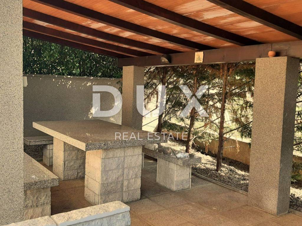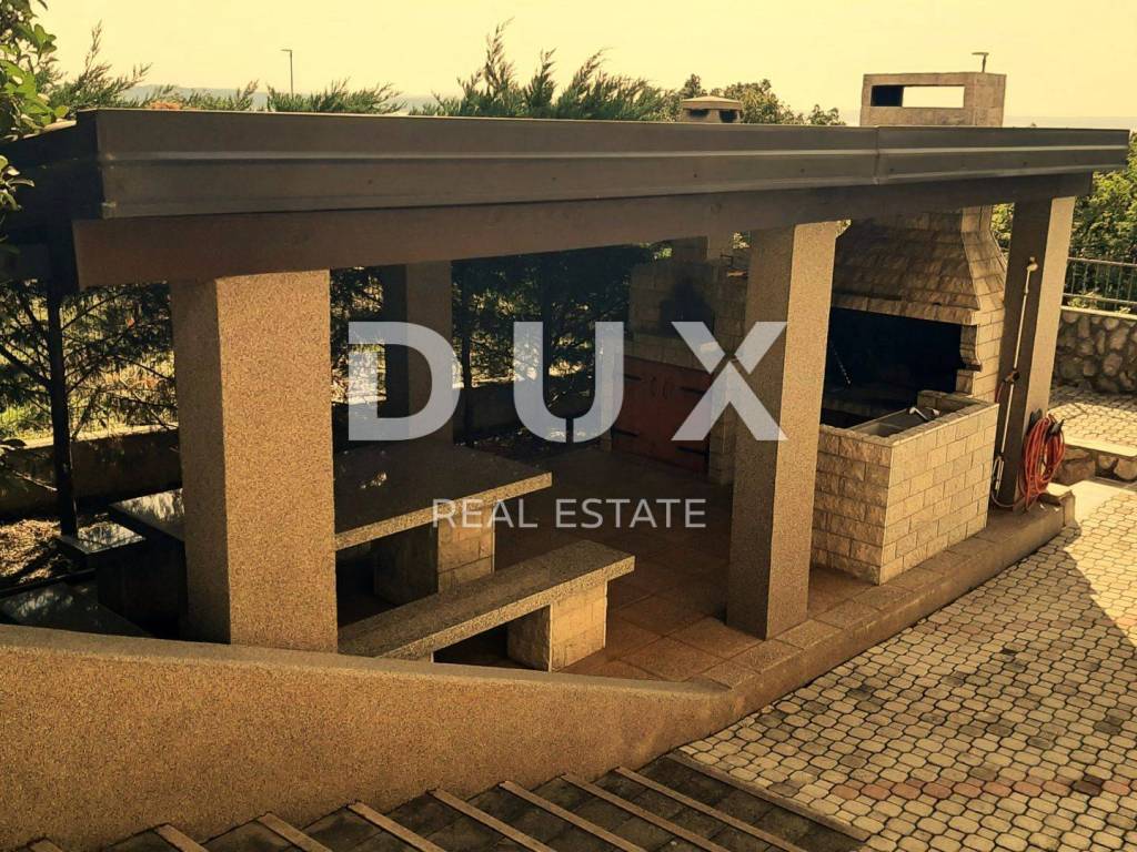Kostrena is an old coastal town, first mentioned at the beginning of the 15th century. It gained its first municipal independence in 1874, but kept it for a very short time, only two years. It is divided into two parts, St. Lucia and St. Barbara, according to the names of the two churches that exist in its territory. Kostrena is located in the immediate vicinity of the city of Rijeka, surrounded by the bay of Martinšćica and the Bay of Bakar. The Kostren peninsula is about 10 kilometers long and slopes gently towards the sea coast. Beautiful beaches are located along its entire length, which are visited by thousands of bathers during the summer. The most famous and most visited are those in Žurkovo bay, followed by Smokvinovo, Svežanj, Spužvina, Podražica, Nova voda and Perilo. Kostrena consists of about twenty settlements, many of which were named after families, and today Vrh Martinšćice, Glavani, Sv. Lucija, Rožmanići, Doričići and Paveki. The characteristic karst area with Mediterranean plants and the famous Kostren thunderbolts, and the mild climate that sometimes succumbs to strong storms, are the characteristics of this region. Just 200m from the first beach, in a quiet street, there is this beautiful family house with two apartments, the sale of which we are mediating. It has a total living area of 372 m2, built on a plot of 882 m2, surrounded by a garden of 687 m2. It consists of a basement with a tavern of 30m2, an apartment on the ground floor of 182m2 and an apartment on the first floor of 190m2. The ground floor contains a covered entrance, a hallway, a living room with access to a large terrace, and a kitchen with a dining room and pantry. There are two bedrooms with balconies, a bathroom and two toilets. An external staircase leads to the first floor, where there is an apartment of 190 m2, consisting of a covered staircase, a hallway, a living room with access to a spacious terrace with a wonderful view of the sea and the Kvarner Bay, there is a kitchen with a pantry and a dining room, four bedrooms with balconies, one bathroom and one toilet. The house has a large garage in which there is a central heating system, (central heating), a pellet stove. It has three separate chimneys, one is for the fireplace located in the tavern, the second is for the wood stove located in the living room, and the third serves the central heating unit. All floors are equipped with inverter air conditioners. In the yard there is a summer kitchen with a bread oven and a grill. The front side of the yard, due to its size, offers parking for approximately eight cars. The back side of the yard facing the sea has two smaller terraces, a green area and offers the possibility of building a swimming pool. The house is fully furnished and is being sold as such. A beautiful property in one of the most sought-after locations in Rijeka-Kostrena and its surroundings offers countless possibilities to its new owners. The beginning of a peaceful family life in a top location or a safe return on investment through renting for tourist purposes. Dear clients, the intermediary commission is charged in accordance with the Terms and Conditions. www.dux-nekretnine.hr/opci-uvjeti-poslovanja.
