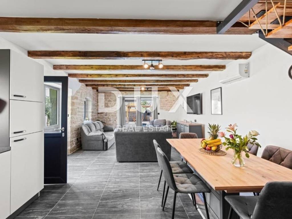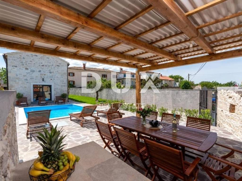 The town of Poreč, one of the most beautiful pearls of the Adriatic Sea, is located on the west coast of Istria. On the relatively small peninsula area where the city arose, traces of the meeting of the Slavic, Romanic and Germanic worlds are still clearly visible today, which at the same time bear witness to the multitude of changes - political, social and ethnic - that this Istrian town has experienced in history. The history of Poreč is a history of constant changes, movement and turmoil, the impermanence of the people, ups and downs, in which the history of new beginnings appears as a constant. This city constantly reveals traces of the life of many civilizations and cultures that built its urban and historical identity. This very charming house will satisfy many appetites in search of a new home. It is spread over a plot of 538m2 and the total area of the house is 138m2 gross. Located in an extremely quiet place in the vicinity of Poreč, it will provide peace and privacy to the new owners. Originally made of stone, and completely adapted in 2023, it is in the phase of finishing works with completely new floors, installations, carpentry, and the new layout conveys a sense of security and longevity of the house itself. The anthracite color of the woodwork, stone and in the inner part of the wooden beam is a winning combination of modern and rustic. In the finished stage of adaptation, the very moment you arrive in front of the house, you will be surprised by the swimming pool with summer kitchen, where you will spend the best moments in pleasant company during the long summer days. The house extends over two floors. On the ground floor there is a living room with a dining room that has direct access to the pool, and an open space kitchen. Below is a hallway that leads to a modern bathroom with a walk-in shower on the right, a storage room on the left that is used as a laundry room, and straight ahead to a spacious bedroom with access to the yard. From the living room we have stairs that extend to the first floor and there are two more bedrooms with ensuite bathrooms so that everyone has their own privacy. In addition, each room has a separate air conditioner for cooling, and in the winter months you will be warmed by underfloor heating, for which there is also a heat regulator in each room. A property suitable for a larger family and also with a lot of potential for tourism investment.