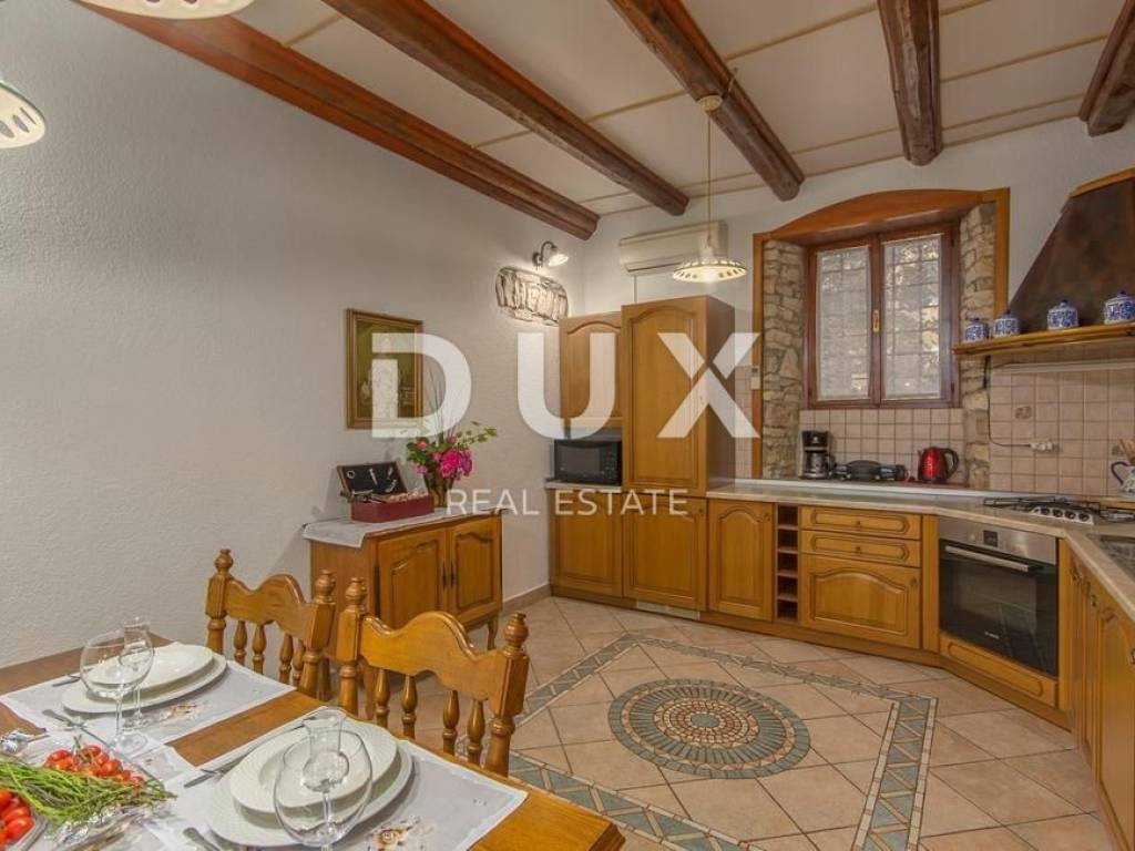 This stone house is located in the center of Šišan. The house on the ground floor has a living room, kitchen and bathroom and a large covered terrace with a summer kitchen with access to the pool and garden. while on the 1st floor there are 4 bedrooms and a bathroom. The total living area is 148 m2. The house is equipped with quality carpentry, mosquito nets, designer shutters, has 2 bathtubs, 4 air conditioners, wood stove and surveillance cameras. Garage of 36 m2 with two parking spaces and storage in the garden of 14 m2. Parking for several cars in a spacious garden. Also, a beautiful orchard with more fruit trees: plums, figs, cherries, apricots and apples. The house is fully furnished and ready for rent or to start a quiet life of a large family. Close to all amenities for the life of modern man. Only 3 km from beautiful wild beaches. OPPORTUNITY!