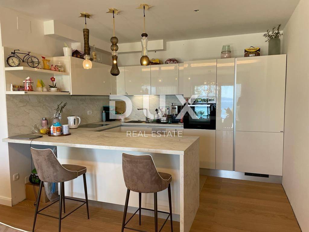KOSTRENA, a luxuriously decorated apartment with a garden and a beautiful view of the sea Kostrena is an old popular seaside resort, first mentioned at the beginning of the 15th century. It gained its first municipal independence in 1874, but kept it for a very short time, only two years. It is divided into two parts, St. Lucia and St. Barbara, according to the names of the two churches that exist in its territory. It is located in the immediate vicinity of the city of Rijeka, framed by the bay of Martinšćica and the Bay of Bakar. Our Kostren peninsula is about 10 kilometers long and slopes gently towards the sea coast. Beautiful beaches are located along its entire length, which are visited by thousands of bathers during the summer. The most famous and most visited are those in Žurkovo bay, then Smokvinovo, Svežanj, Spužvina, Podražica, Nova voda and Perilo. Kostrena consists of about twenty settlements, many of which were named after families, and today the most inhabitants are Vrh Martinšćica, Glavani, Sv. Lucija, Rožmanići and Paveki. The characteristic karst area with Mediterranean plants and the famous Kostren thunderbolts, and the mild climate that sometimes succumbs to strong storms, are the characteristics of our region. We are selling this beautiful apartment with a garden, terraces and a beautiful view of the sea. The superbly decorated 3-bedroom apartment consists of an entrance hall, a kitchen with a dining room and a living room, and a guest toilet. From the living room there is access to a beautiful garden with a covered and detached terrace that belongs to the apartment. The sleeping area is separated from the living area by the next corridor, where there are three rooms, a dressing room and a bathroom. It has a storage room and two parking spaces. The property is ideal for family life. Dear clients, the agency commission is charged in accordance with the General Business Conditions www.dux-nekretnine.hr/opci-uvjeti-poslovanja