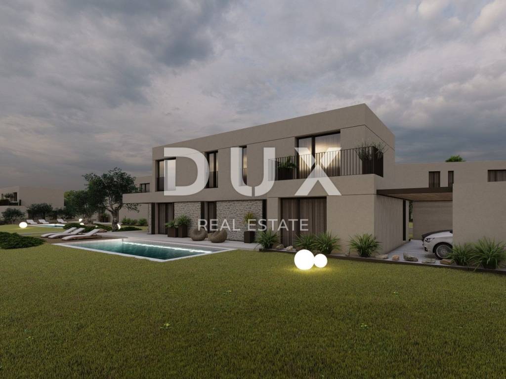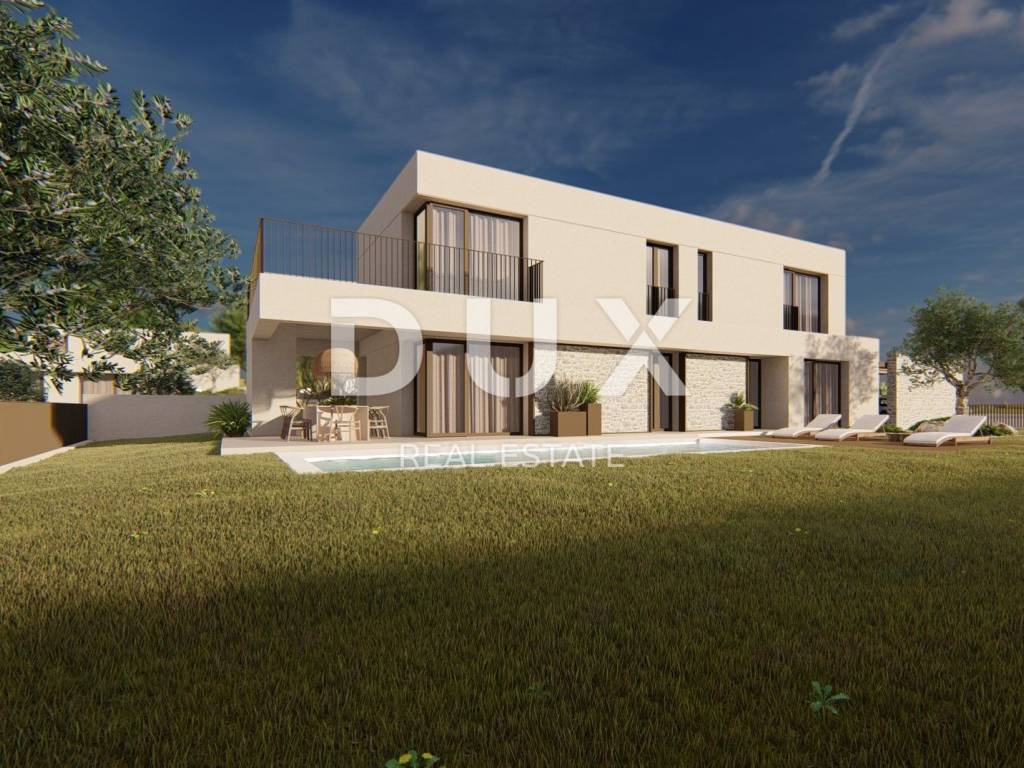A beautiful villa for sale near Poreč under construction. The villa will consist on the ground floor of a kitchen, dining room and living room, toilet, bathroom, bedroom, pantry and covered terrace, while on the first floor there will be three more bedrooms, each with its own bathroom. Also, one room will have access to the terrace. The house will have electric underfloor heating on the ground floor and upstairs. In addition, the house will be equipped with video surveillance and an alarm system with motion activation. The exterior joinery will be made of aluminum, while the interior doors will be made of plywood or solid wood. There is a chimney in the living room. The land will be covered with an irrigation system, and the pool will be covered with foil. The concrete roof slab is separated with at least 12 cm of stone wool. 10 cm styrofoam is used as insulation for external walls. Facade color (fassa.it) according to the customer's choice. The price includes tiles of Italian origin, toilet and sink (Catalano New-Zero), shower glass, plaster fittings (Paffoni). Exceptional and proven quality of construction and built-in materials. Agency recommendation! It is certainly a property worthy of attention due to the quality of construction, materials and fantastic location. A rarity on the market!
