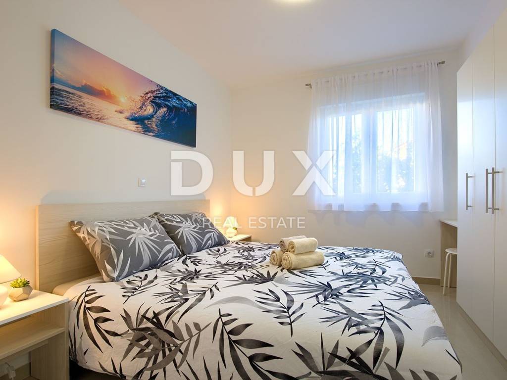 In this place there is this newly renovated house on two floors with 3 apartments, a huge garden of almost 1000 m2, a large barbecue with a covered area for table and chairs, and a tavern of 55 m2. The first apartment on the ground floor consists of a living room, kitchen with dining area and exit to the terrace, 3 bedrooms, 2 bathrooms with a total living area of 69m2. The second apartment on the ground floor consists of a living room, kitchen with dining area, bedroom and bathroom with a living area of 40 m2. An internal staircase leads to the upper apartment with a total area of 110 m2 and consists of a large living room, kitchen with dining area, 3 bedrooms, 3 bathrooms and 2 terraces. The house also has a boiler room and space for washing machines. Heating and cooling is with the help of air conditioning, but pipes have also been installed for central heating. The tavern has its own bathroom, and next to the tavern there is a garage. The current owner rents apartments for tourists and has full apartments every season, the future owner can only take over the already well-established business to recoup the investment. Ownership is 1/1 and no encumbrances.