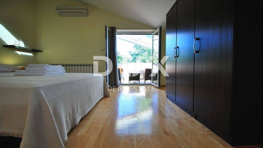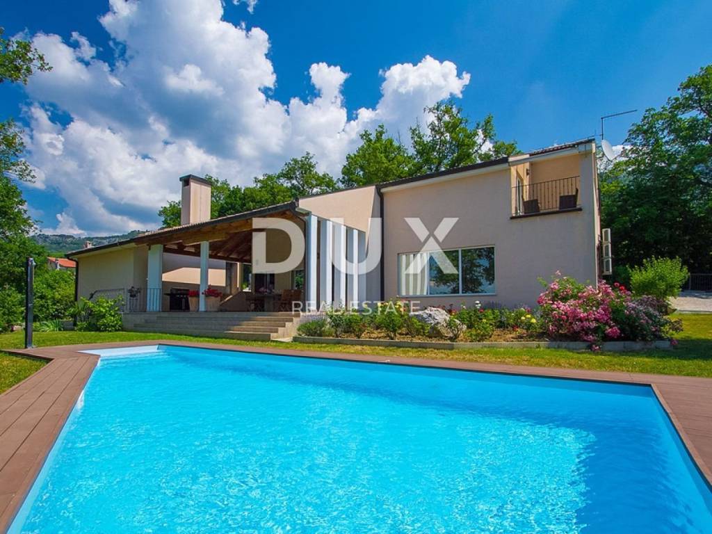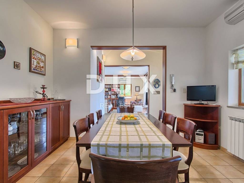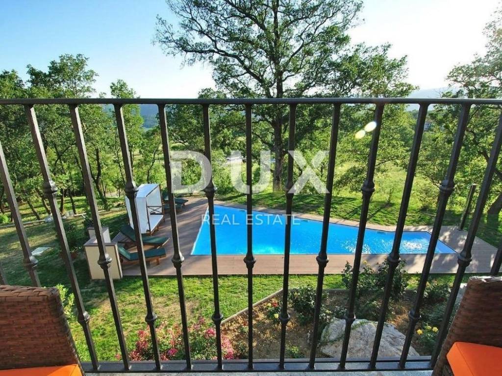 Near the town of Buzet, a modernly designed villa with a swimming pool in a spacious garden is for sale. This superbly equipped and decorated, award-winning villa of 285 m2 extends through the ground floor and first floor while next to the villa there is a garage of 36 m2 with a basement. In the basement there is a boiler room and a spacious typical Istrian tavern with an open fireplace for pleasant gatherings on rainy and colder days. The ground floor of the villa has a fully equipped kitchen with dining area and living room with access to a covered terrace of 50m2, bedroom with private bathroom equipped with whirlpool tub, pantry and toilet. On the first floor of the villa there are three bedrooms, study, pantry, two bathrooms and a covered terrace. Spacious rooms, quality furniture, exceptional equipment and central heating guarantee the exceptional comfort of this well-built villa. Spacious property of 3030 m2 on which the villa and pool of 50 m2 with sun deck are located, immaculately decorated and maintained and provides a lot of peace and privacy. The perfect property for a quiet family life close to all the amenities needed for living or investing with a lot of tourist potential given the many specifics of Buzet, areas of rich excursion opportunities throughout the year and beautiful views from the hillsides. OPPORTUNITY!!!