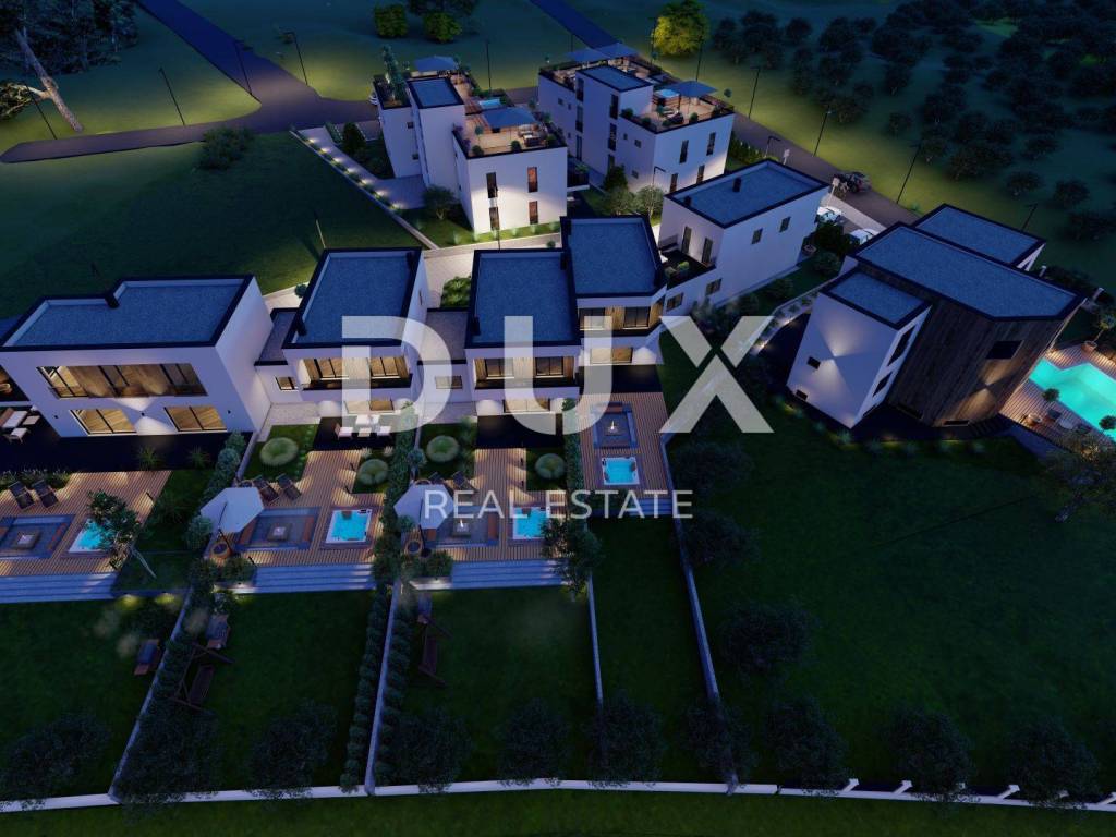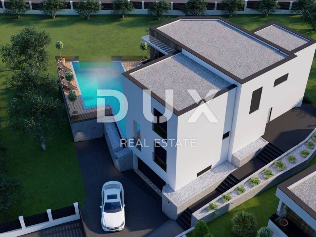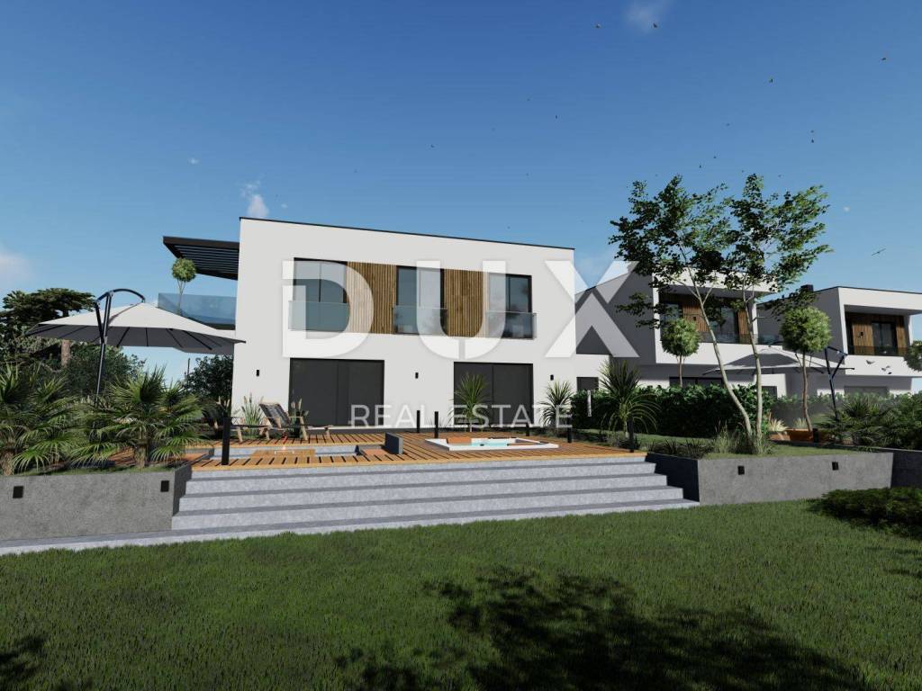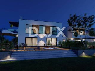 We offer beautiful SMART HOME villa under construction with sea views. Located in an elite part of Porec very close to the sea, with a sea view that no one can cover. Not far from the center of Porec with all commercial facilities. Nearby are promenades by the sea, beautiful beaches, ideal position for fans of sports activities (tennis courts, bike paths). Villa consists of an entrance hall, guest toilet, open space kitchen and living room of 45.76 m2 with Schuco / Aluplast glass wall leading to a covered terrace of 10.21 m2 and a garden of 881 m2 with a modern fireplace to enjoy the colder in the evenings and a whirlpool for 4 people, on the same floor there is an engine room. Granite-clad stairs and a glass railing with a wooden handrail lead to the floor where there are three bedrooms, one of which has access to a balcony of 10.21 m2, which is considered a parent's room of 18m2, next to which there is a bathroom with double sink and two children's bedrooms. .room of 11m2 with one bathroom. The whole villa has underfloor heating via VAILLANT heat pumps, as well as air conditioning in each room for cooling them. The floors are covered with quality HARO Germany parquet. Ceramics is Italian porcelain. The interior joinery is 2.30 m high with a 3D lock and magnetic closure. The expected energy class is A, Thermal insulation of stone wool 10cm. The future owner can choose the color of ceramics and parquet. It is possible to arrange the interior design of the villa. Villa 5 will have two driveways, one directly from the main road.