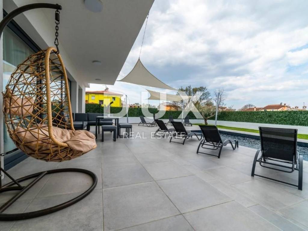Werbung für eine Villa mit Pool near Poreč, mit einer Fläche von 203 m2, 592 m2 Land, 4 Schlafzimmern und 4 Badezimmern. Fußbodenheizung. Wärmepumpen. Solar panels are installed. Irrigation of gardens. 4 parking spaces. Der Poolbereich ist 36 m2 gross (nicht beheizt) mit einem Jacuzzi, dunkler Folie + einem aufgesicht Außenjacuzzi. Incredible Villa with Pool nur wenge Minuten mit dem Car von der schönen Stadt Poreč entfernt. Diese Immobilie bietet die perfekte Gelegenheit, eine Immobilie in der wunderschönen Region Istrien in Top-Lage zu erchaugen, die sich perfekt zum Wohnen oder als Investition zur Vermietung eignet. This impressive villa has a total of 4 bedrooms and 4 bathrooms with an area of 203 m2. Dürer hinaus befindet sie sich auf einem Grundstück von 592 m2, das viel Platz zum Entspannen, Unterhalten und Geselligkeit mit Familie und Freunden bietet. Im Inneren der Villa haben Sie Fußbodenheizung und Wärmepumpen zur Verfügung, soddas Sie das ganze Jahr über komfortable sind. Es werden auch Solarpaneele instalert, um Stromkosten zu rüttenden. The irrigation of the gardens facilitates Ihnen die Pflege Ihres Gartens, und 4 Parkplätze es umbildung es Ihren Gästen, einfach zu parken. Die Hauptattraction dieser Villa ist zweifellos der 36 m2 große Pool mit Jacuzzi, ausgestatt mit dunkler Fol