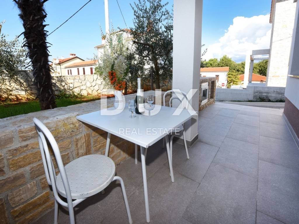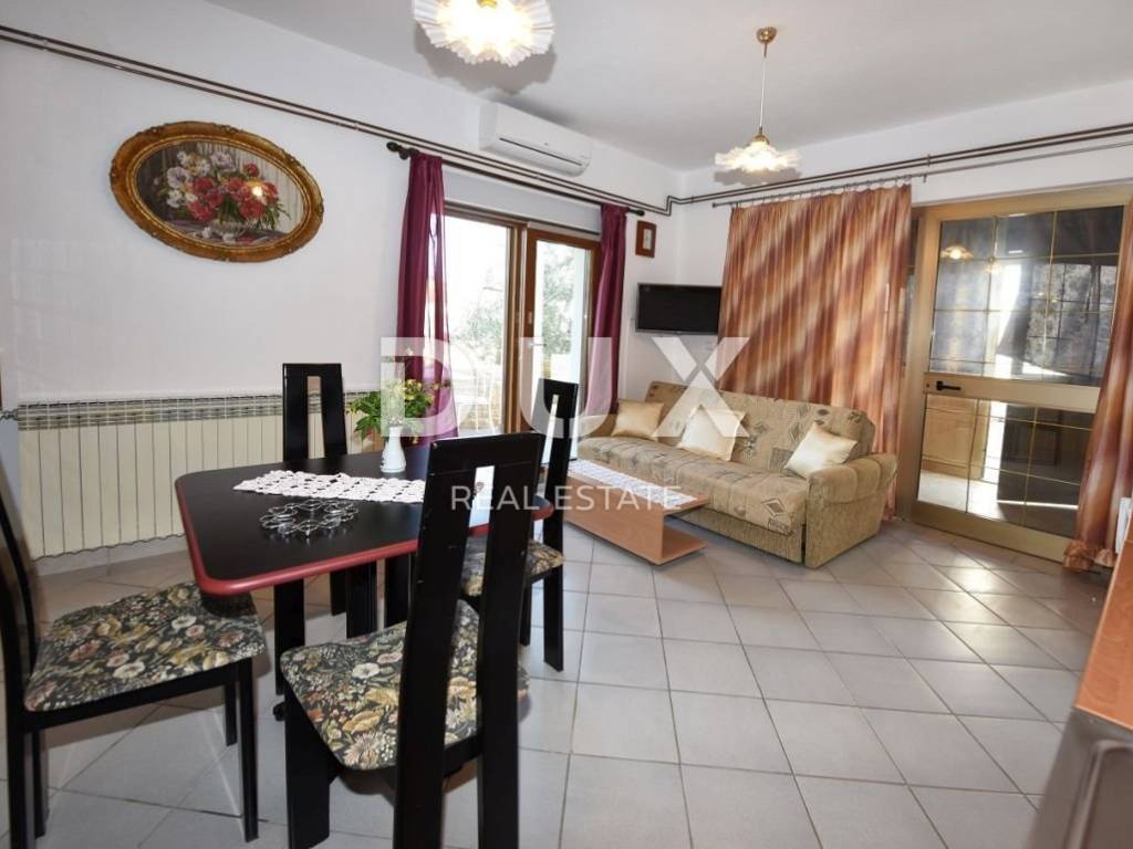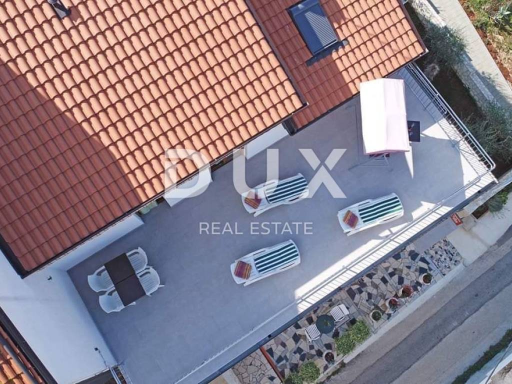 Not far from beautiful Porec, at a distance of only 3 minutes walk from the waterfront on one side and 5 minutes walk from the first beach on the other, is located this special apartment house with 6 fully furnished residential units. The house with its total living area of 414 m2 spreads over three floors. It consists of a total of 6 apartments, of which as many as 4 are rented, so the future owner can take over a well-established business. Each apartment also has its own terrace, and some of these terraces offer stunningly beautiful sea views. The house also has solar panels for water heating. The house is located on a plot of 584 m2. In the yard there is a place with a barbecue for that gastronomic part of enjoying the outdoors. And to make the atmosphere even better for the shade in the garden, as many as 23 beautiful olive trees take care of it. The yard is adorned with beautiful flowers and a place to relax in the sun with deck chairs. Parking is located next to the building. An ideal choice for all those who want to enjoy the peace and quiet and those who want to enjoy the beautiful sea view.