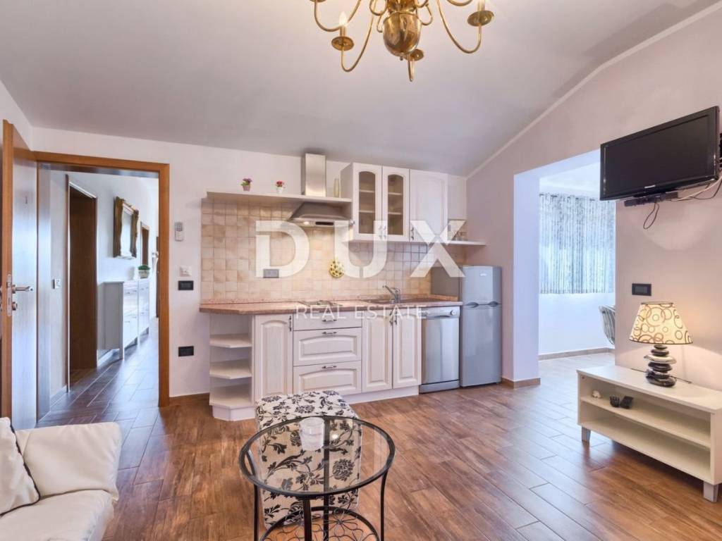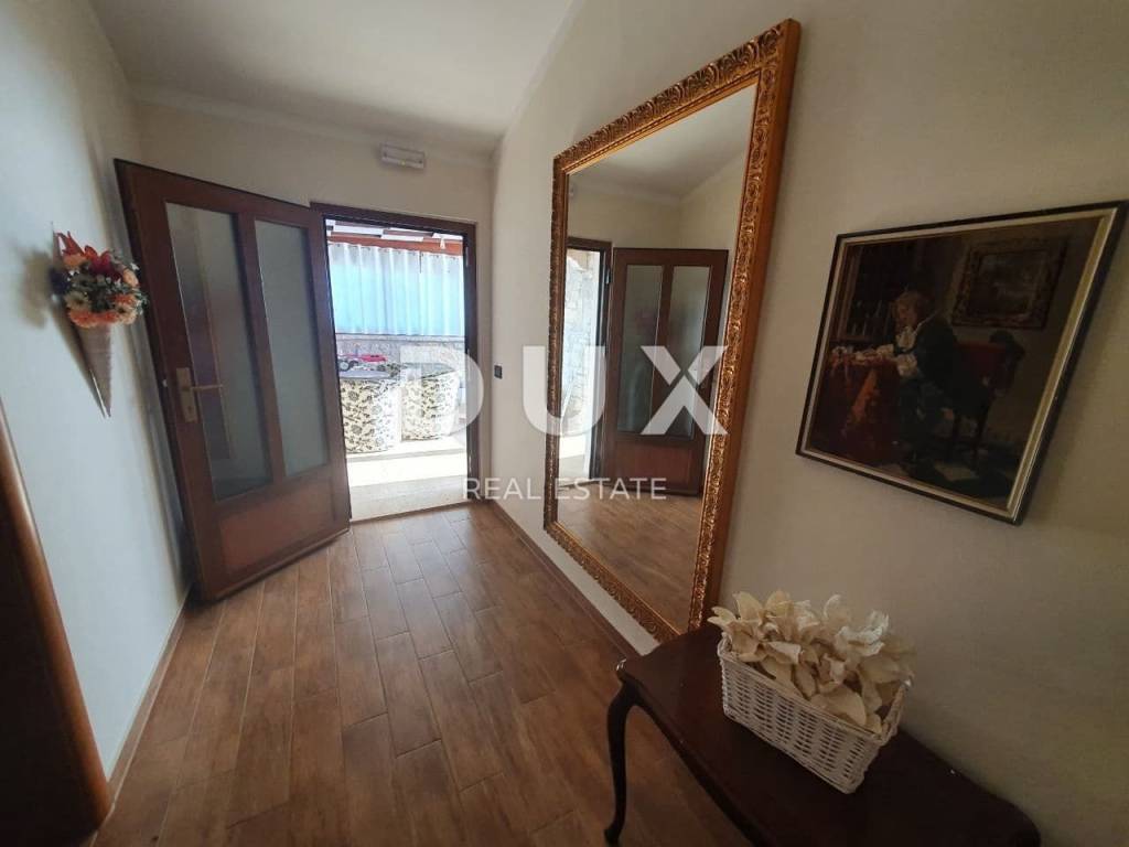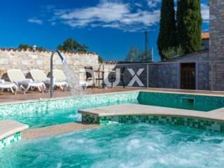 The accommodation part of the building is located on the first floor and has an area of 151.20 m2 which is entered from the south side of the building. The villa consists of 4 apartments that can function separately but also as a unique space for 8-10 people. Each apartment has its own bathroom, and two apartments have their own secured kitchen with dining area. It also has a shared terrace with an extension in the large living kitchen. The villa is equipped with a swimming pool and jacuzzi, terrace, beautiful spacious yard, summer kitchen and all amenities that fully ensure a comfortable stay overlooking the sea. All rooms are protected by an alarm system and a camera system. The building also has a heating and cooling system. Heating is underfloor in every room of the villa, even during the greatest winters only underfloor heating is enough. And as far as cooling is concerned, each room also has its own air conditioning. The advantage of this building is the quality in all segments of construction which can be seen in the attached pictures. Solar water heating was carried out throughout the building.