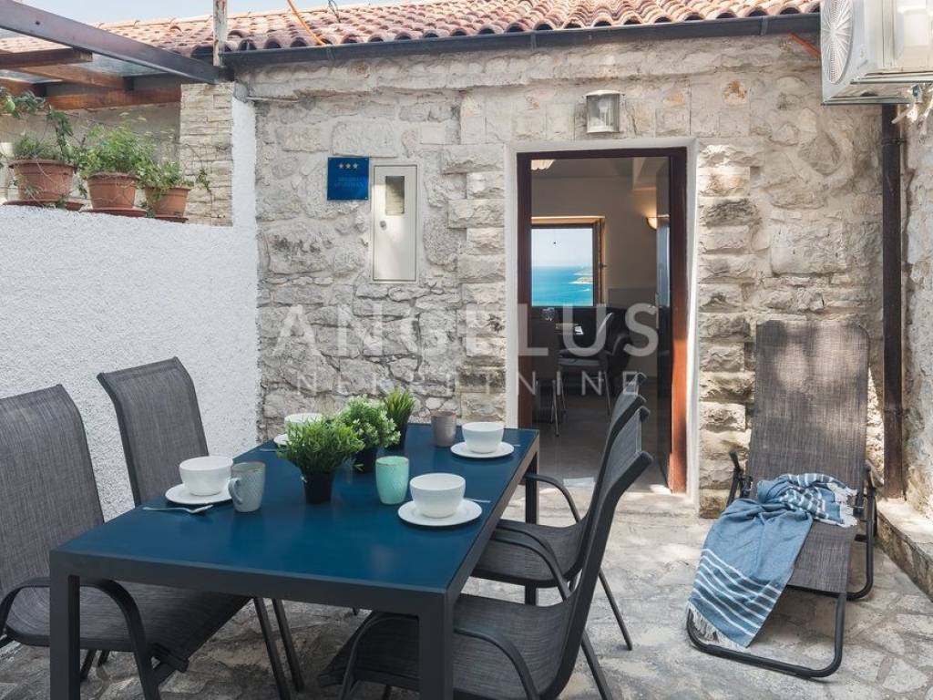This authentic Istrian stone house is available for long-term rental, offering you the basis for a peaceful and relaxing vacation not far from the beach and with a beautiful view of the sea and the archipelago of islands. Modernly decorated bedrooms, bathrooms and kitchens make you feel comfortable here. The layout is ideal for a small family or people who want to spend time together in the living room and on the beautifully landscaped terrace/yard. The extraordinary view of the sea and islands is priceless.