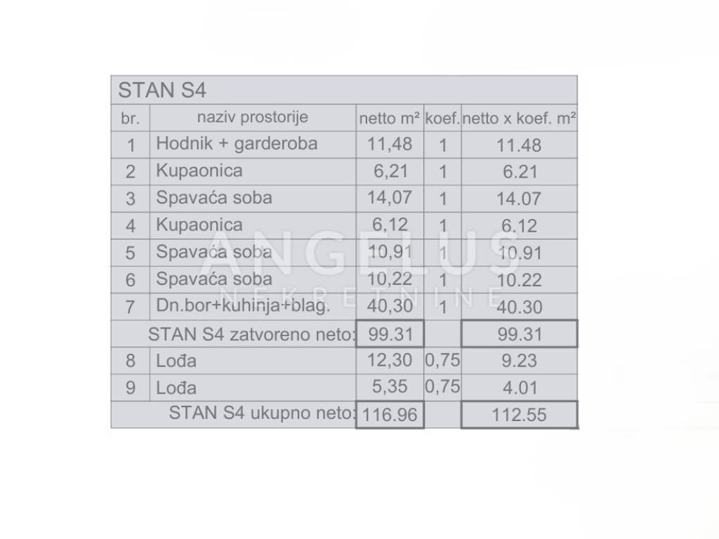 DESCRIPTION: It is a three-room apartment on the second and last floor of a multi-apartment building in the Pula suburb of Valdebek. The apartment consists of a living room, a kitchen and a dining room in an open space concept, with a total area of more than 40 m2, which is oriented on two sides with large glass walls. The apartment has three bedrooms, two bathrooms and two spacious loggias that can be accessed from the living room. The building is currently under construction, in the phase of finishing works, and the apartment is available for purchase already.