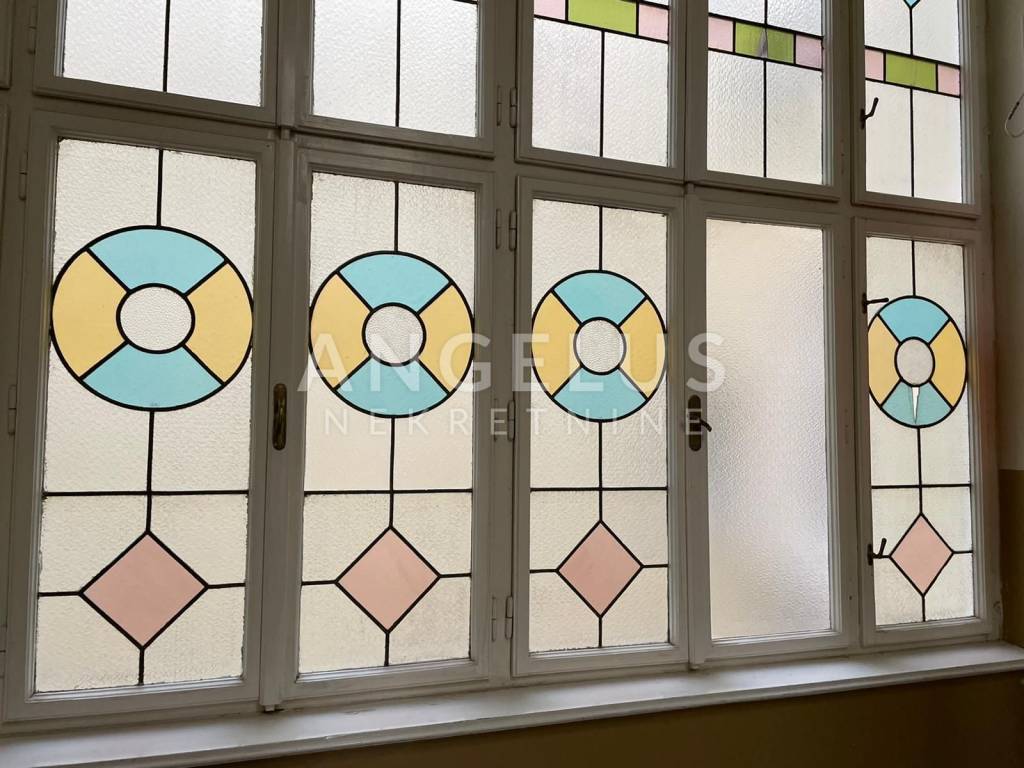 The apartment has a woodshed in the basement and a part of the attic space. The staircase is spacious, decorated with stained glass windows.