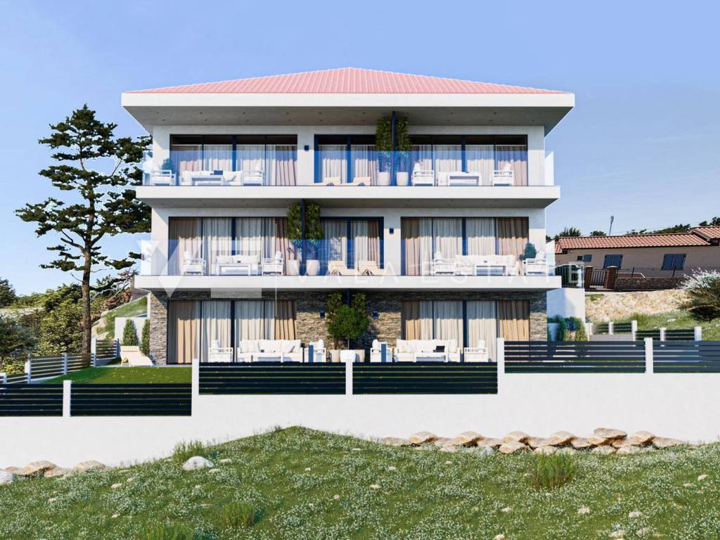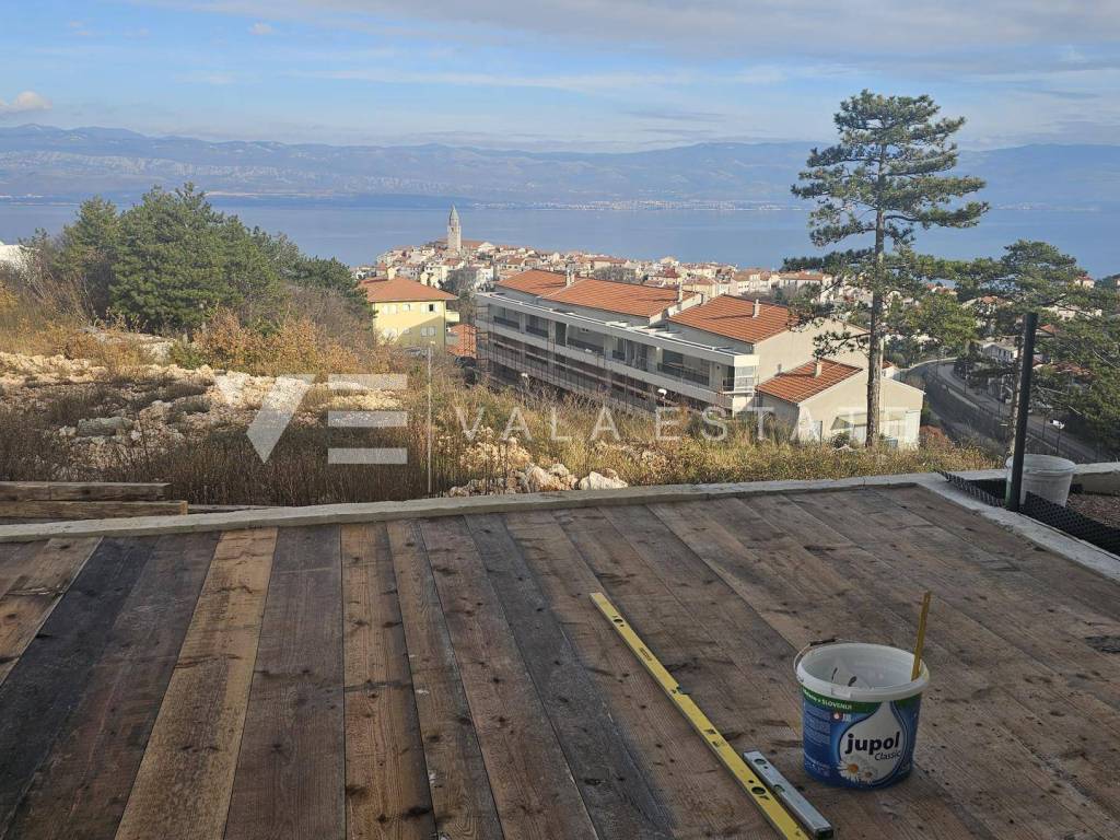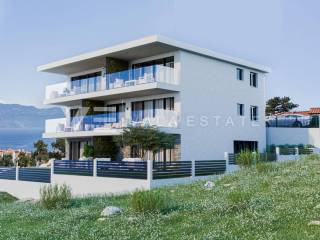 Real estate island Krk, Vrbnik - for sale is an apartment with a total living area of 49.39 m2 located on the second floor of a new apartment building. It consists of an entrance hall, a bedroom, a bathroom, a kitchen with a dining room and a living room with access to a covered terrace with an open view of the sea. The apartment has an additional apartment with a living area of 19.80 m2 on the ground floor of the building, which consists of a bathroom and a space that combines the kitchen, dining room and living room with access to a landscaped garden of 35 m2 with a brick barbecue. It has one parking space in the common yard. Quality construction and equipment, a selection of top-quality ceramics and floor coverings, modern sanitary ware, PVC exterior carpentry with large sliding walls, underfloor heating and cooling, security doors and an air-conditioned heating/cooling system are just some of the features of this modern new building, and what what makes it particularly attractive is the exceptional location with an open panoramic view, only 500 m from the beautiful beaches and the center of Vrbnik. The property is currently under construction, and completion of the works and occupancy is planned by the end of 2025.