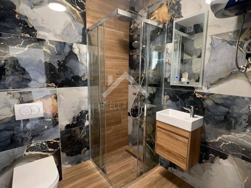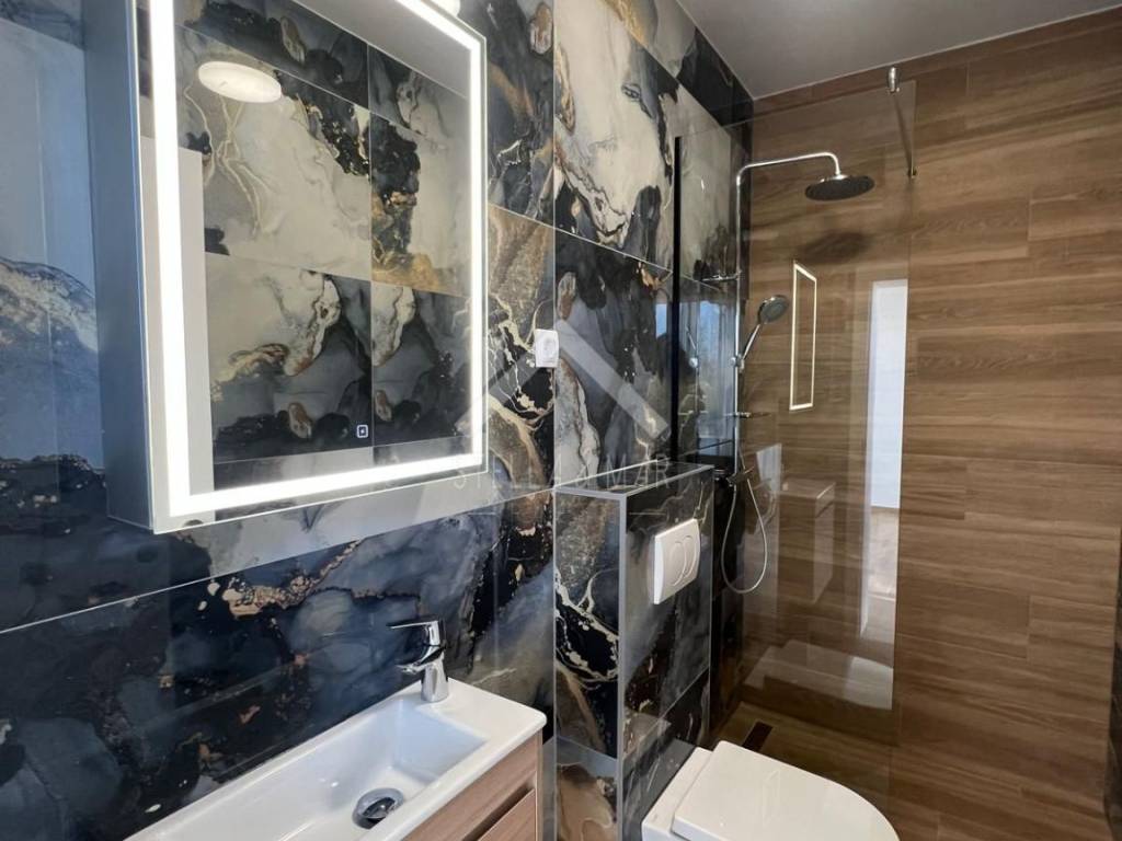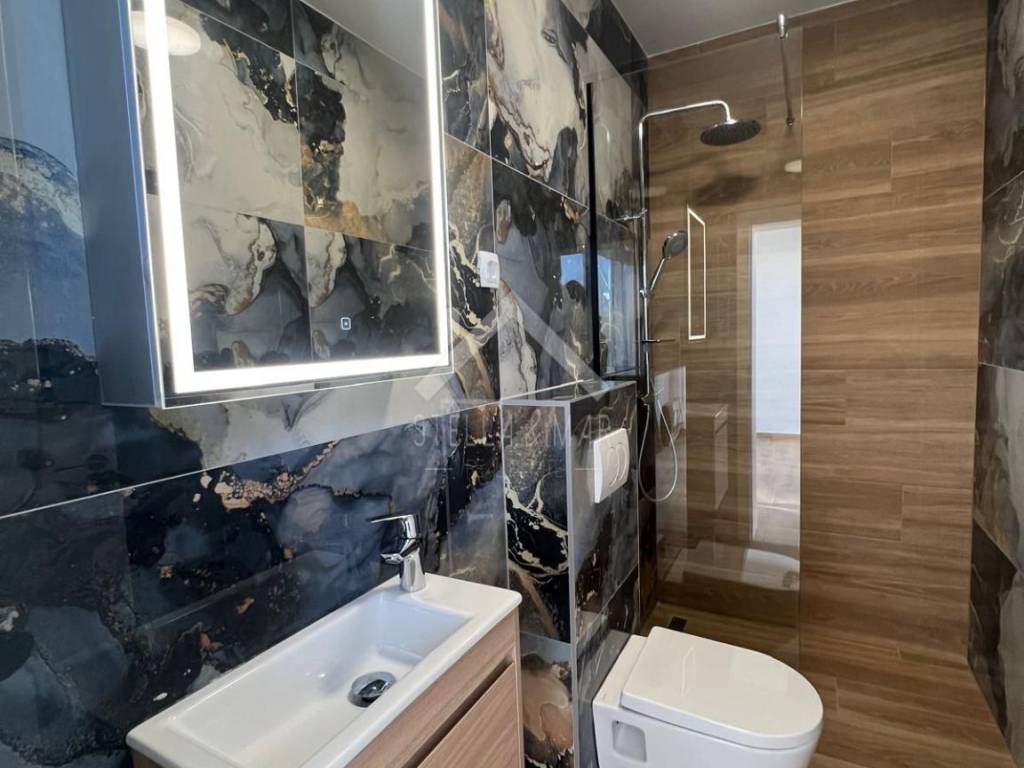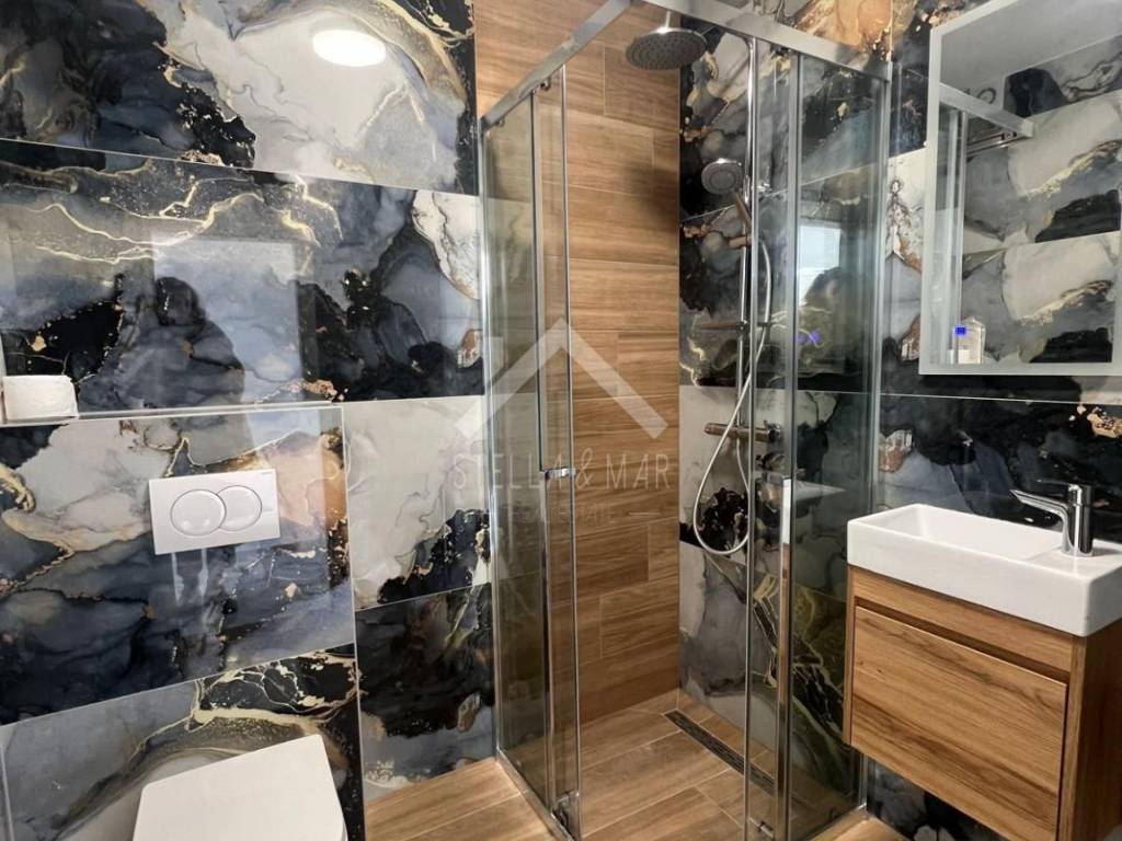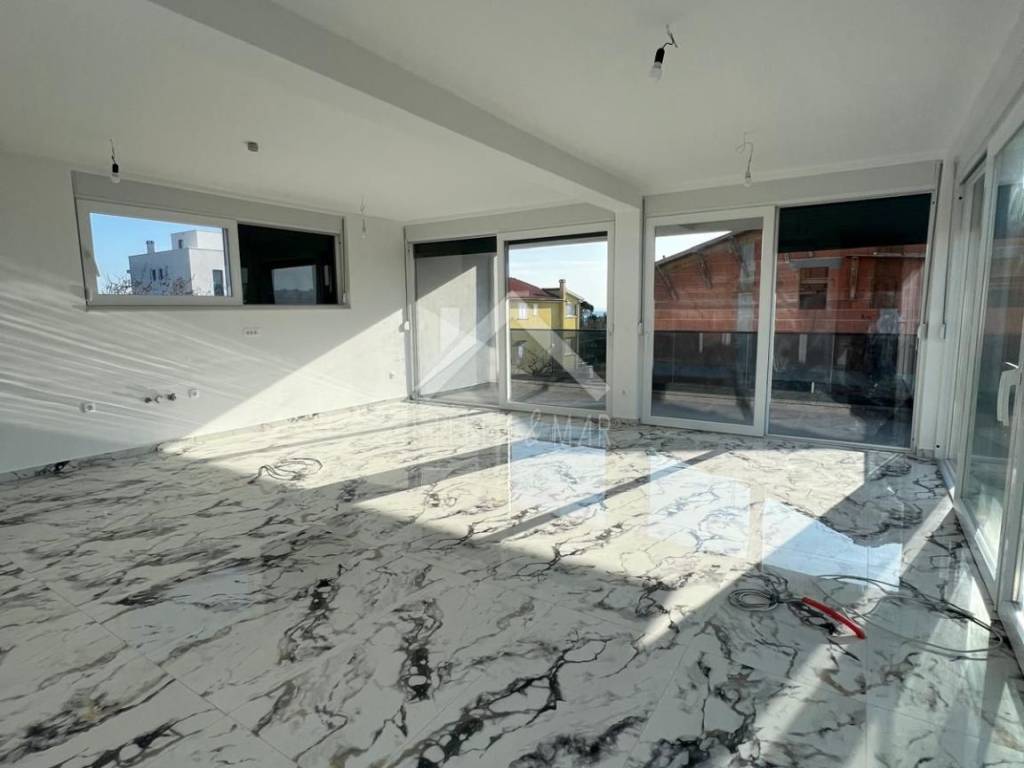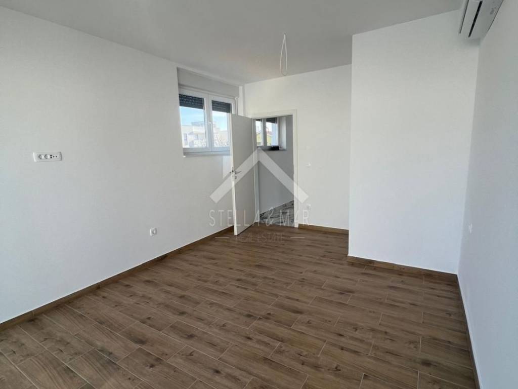 Penthouse with sea view for sale in Privlaka near Zadar. It is located in a smaller, newer residential building. It extends over two floors. The first floor consists of a kitchen with dining room, living room, exit to a comfortable covered terrace, hallway, three bedrooms and two bathrooms. An internal staircase leads to the 2nd floor, where there is an uncovered roof terrace with a view. The whole apartment is rich in light, thanks to the large glass walls and the very orientation of the property. Also, the entire apartment has underfloor heating, air-conditioned rooms, video intercom,... The apartment has two parking spaces. The building is connected to the city water supply.