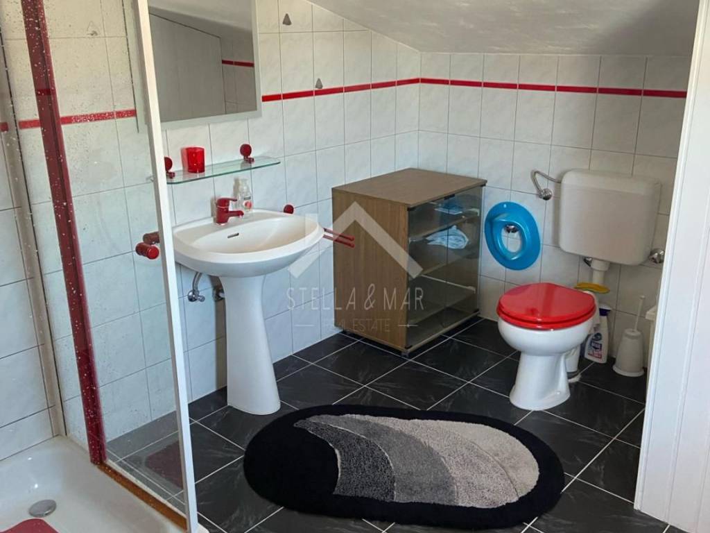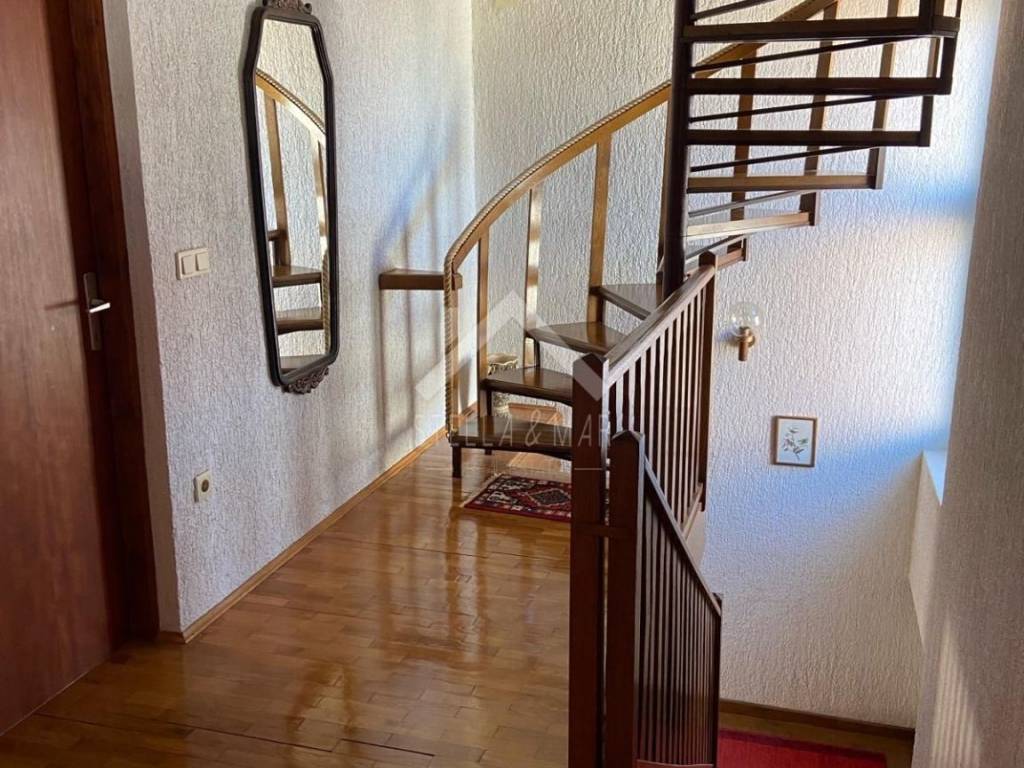 Internal stairs lead to the first floor where there are two bedrooms, a bathroom and a spacious terrace. Furthermore, the stairs lead to the attic, where there is a smaller entrance hall, two bedrooms and a bathroom.