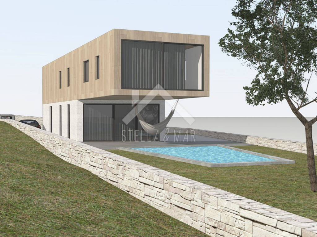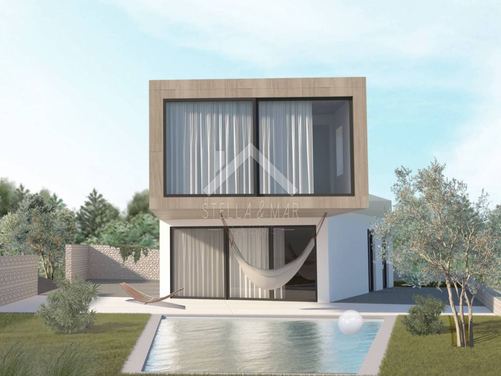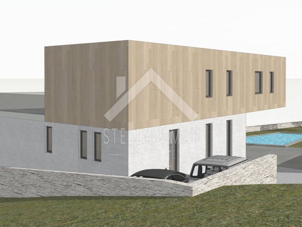 The following is planned on the ground floor of the building: kitchen with dining room, living room, exit to the terrace and yard with a swimming pool, bedroom, bathroom and engine room. Upstairs are 3 bedrooms, each with its own bathroom. Planned supply of electricity through solar panels, water from a cistern.