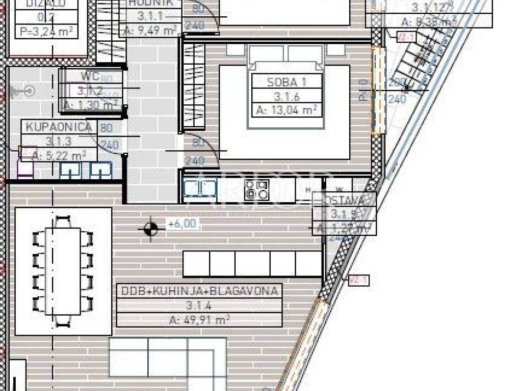 The special feature of this property is the impressive roof terrace of 67 m2 with an outdoor private pool of 28 m2 from which a panoramic view of the Kvarner Bay is offered.