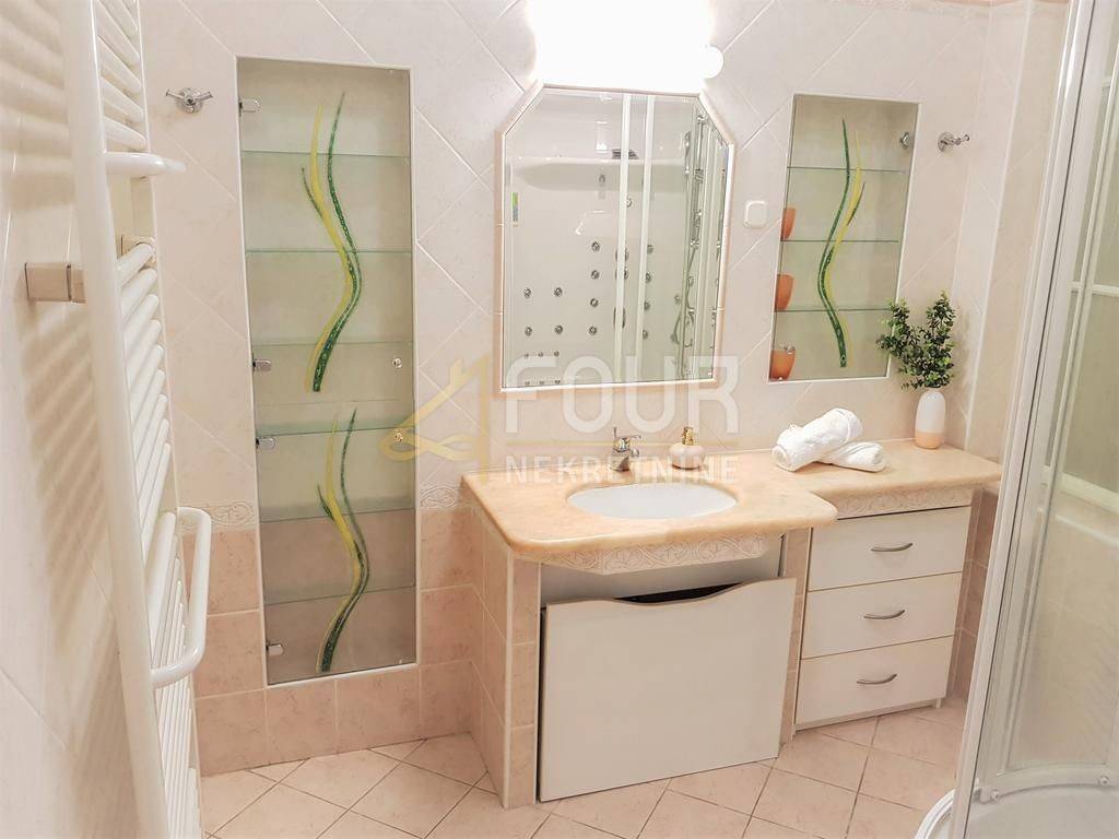 An elegant two-story apartment located in a beautiful Opatija villa is for sale, just fifty meters from the sea. It includes a ground floor and first floor, has a separate entrance and a courtyard of 136 m2, ensuring a high level of privacy and a feeling of living in a house. The total living area is 205.46 m2 and includes spacious and well-organized interior spaces, a veranda, and two balconies that provide additional enjoyment in classic coastal architecture.