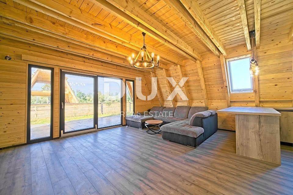Just a few minutes' drive from Karlovac - a city that connects four rivers and brings harmony between nature and urban life - lies the picturesque village of Brođani, known for its proximity to the Kupa River and peaceful, green surroundings. This area is ideal for anyone who wants to live in harmony with nature, while at the same time remaining connected to city amenities. The proximity to the highway further increases accessibility, making this location perfect for both permanent residence and the development of a tourist project. On a fenced plot of almost 900 m, there is a well-built and fully insulated wooden house of 120 m. The warm interior is decorated with attention to detail - a combination of traditional and modern style creates a unique ambiance for everyday life or vacation. The spacious living room with a central fireplace invites you to relax, while underfloor heating and air conditioning ensure comfort throughout all seasons. The house is being sold fully furnished and ready to move in immediately, without the need for additional investments. It is ideal for family life, weekend stays or as an investment for tourist rental, given the proximity of the river, forests and various activities in nature - from cycling, walking to canoeing and fishing. The silence of the surroundings, the sound of the river and the scents of nature provide a special experience, while at the same time you have all the infrastructure and amenities at hand. The use permit has been obtained, which further facilitates the legal aspect of the purchase and opens the door to a serious investment. For additional information or to arrange a viewing, please contact me with confidence, it will be my pleasure to help you make your dreams come true!