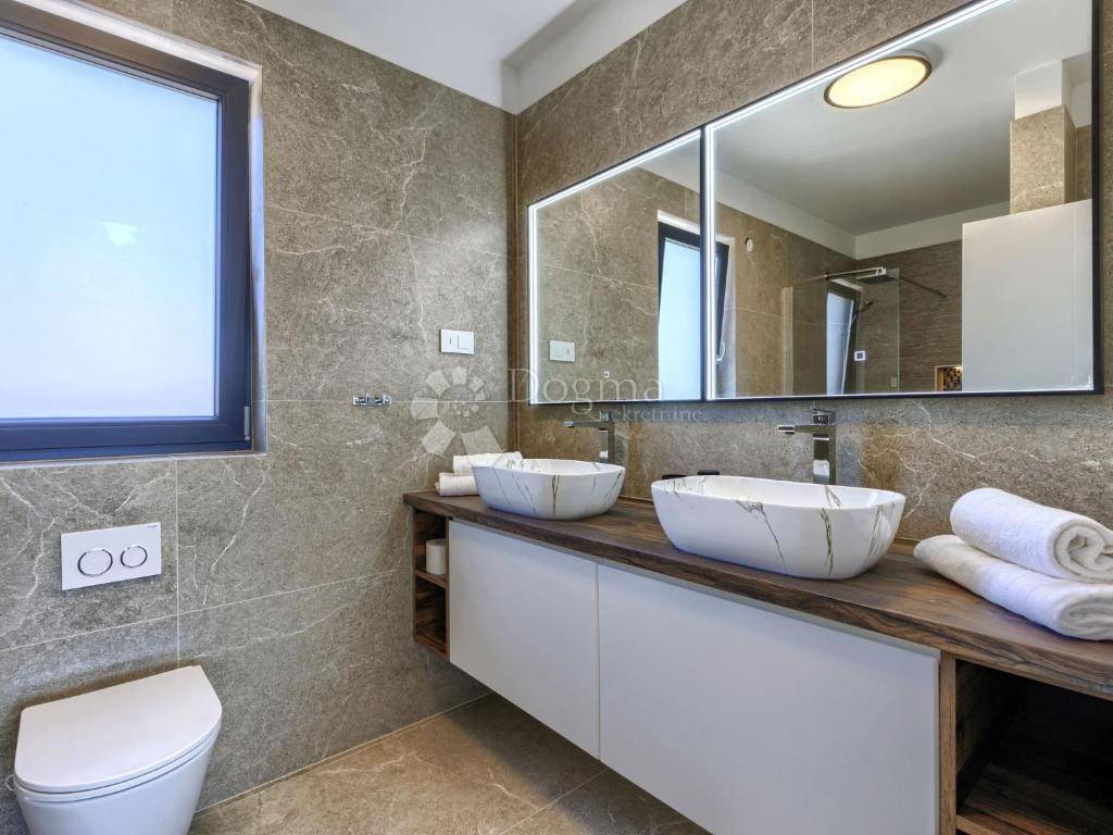 Just a few minutes drive from the centre of Poreč and only 2 km from the sea, this contemporary villa with a net surface of 217 m offers the perfect balance between privacy and convenience. Surrounded by greenery and forest, it provides peace and intimacy while remaining close to all essential amenities. Built on a landscaped plot of 707 m, the villa extends over three levels: basement, ground floor and first floor.
