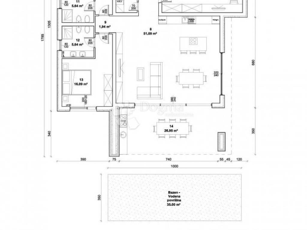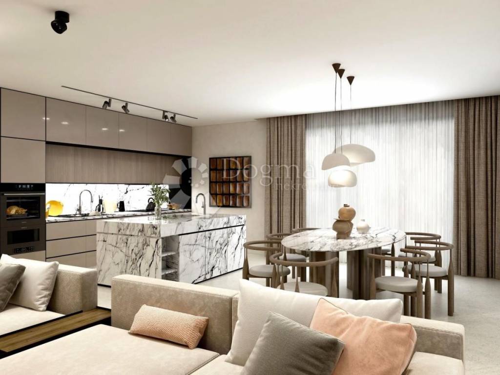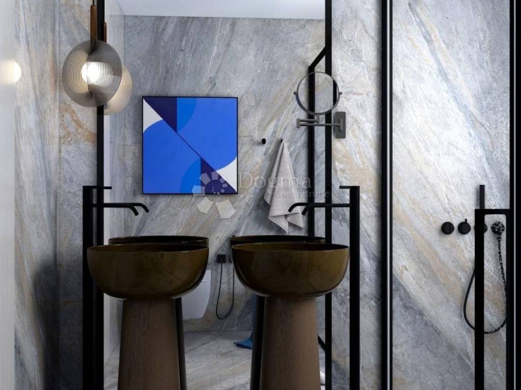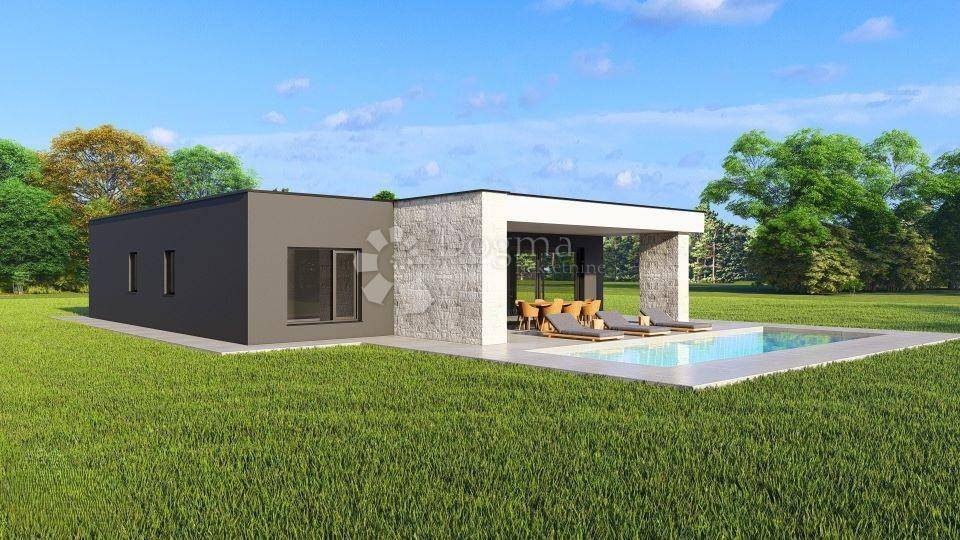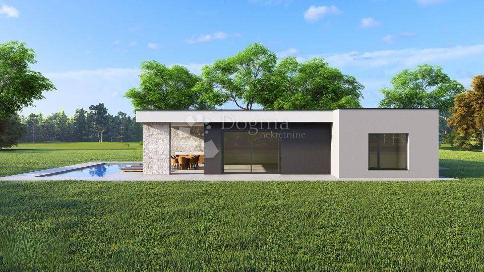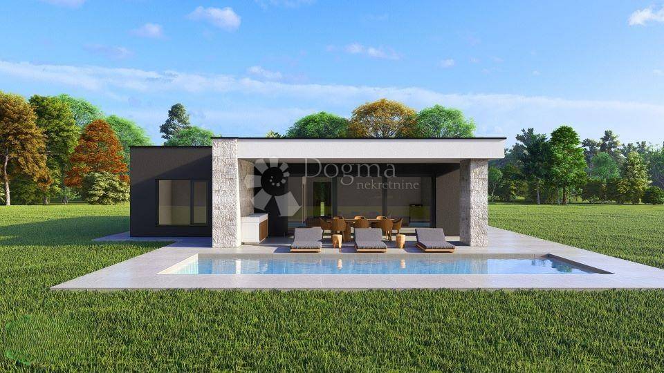 A turnkey villa with a swimming pool is for sale within walking distance of the center of Žminj. The villa is located on a spacious plot and is part of a luxury complex with 9 villas in a quiet environment. The three bedrooms, each with its own bathroom, are arranged in a layout so that each has enough privacy. The common area of the living room and open-plan kitchen is connected by large glass walls with a covered terrace with a summer kitchen and access to the sunbathing area around the pool. Additional rooms at the entrance to the house are the engine room, guest toilet and laundry room. The heated pool is 35 m in size with automatic dosing. The house is an excellent property both for family life near Žminj and for renting to tourists. The maximum capacity of the house is 8 guests. Parking is provided for 6 vehicles and an 11 kW charger for one electric vehicle. Basic technical features: - 10-12 cm external insulation with one external wall clad in stone - high-quality ALU/PVC joinery with electric shutters - heat pumps with smartphone control plus underfloor heating - bathrooms with HansGrohe and Villeroy & Bosch equipment - security entrance door and video alarm system connected to a smartphone - electric entrance door to the property with remote control - 11 kW electric vehicle charger with 5 m cable - 12 kW roof solar panels - horticultural landscaping of the garden - 10-year warranty for the house structure - 2-year warranty for interior work and equipment If the house is purchased during the construction phase, it is possible to choose interior and exterior ceramic tiles up to a certain value defined by the investor. The investor is a legal entity, so the final price of 570,000 includes a 25% VAT item. Planned completion of works 5/2026. For viewing and more details and advice on buying, selling and renting real estate, contact SELMA BAŠIĆ Licensed agent GSM: +385 98 9658170 selma.basic@dogma-nekretnine.com FILIP MARIĆ Licensed agent GSM: +385 91 3355350 filip.maric@dogma-nekretnine.com