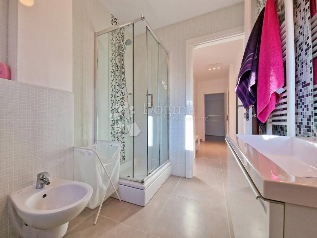 + the fenced garden of 227 m2 contains a barbecue, outdoor shower, automatic irrigation, lighting, lots of greenery, olive trees, and a fenced area with a sliding door that can serve as an additional parking space