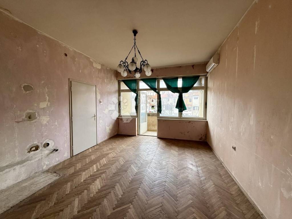 The bedroom opens onto a small balcony, the living room onto a comfortable loggia. The apartment is in original condition and requires renovation but that is not a flaw, it is an invitation to create. The new owner gets a canvas on which to paint their home, but with clear frames of superb spatial intelligence that never gets old.