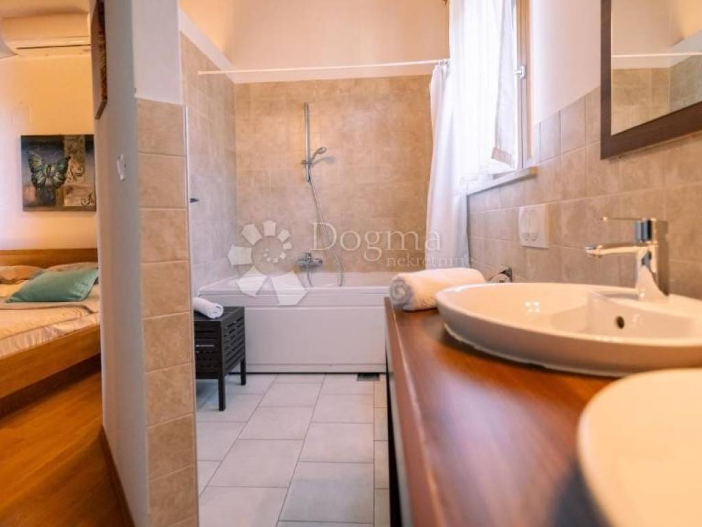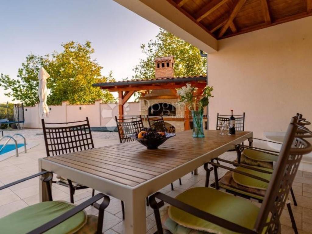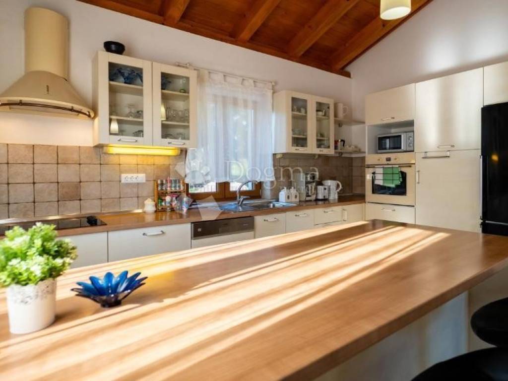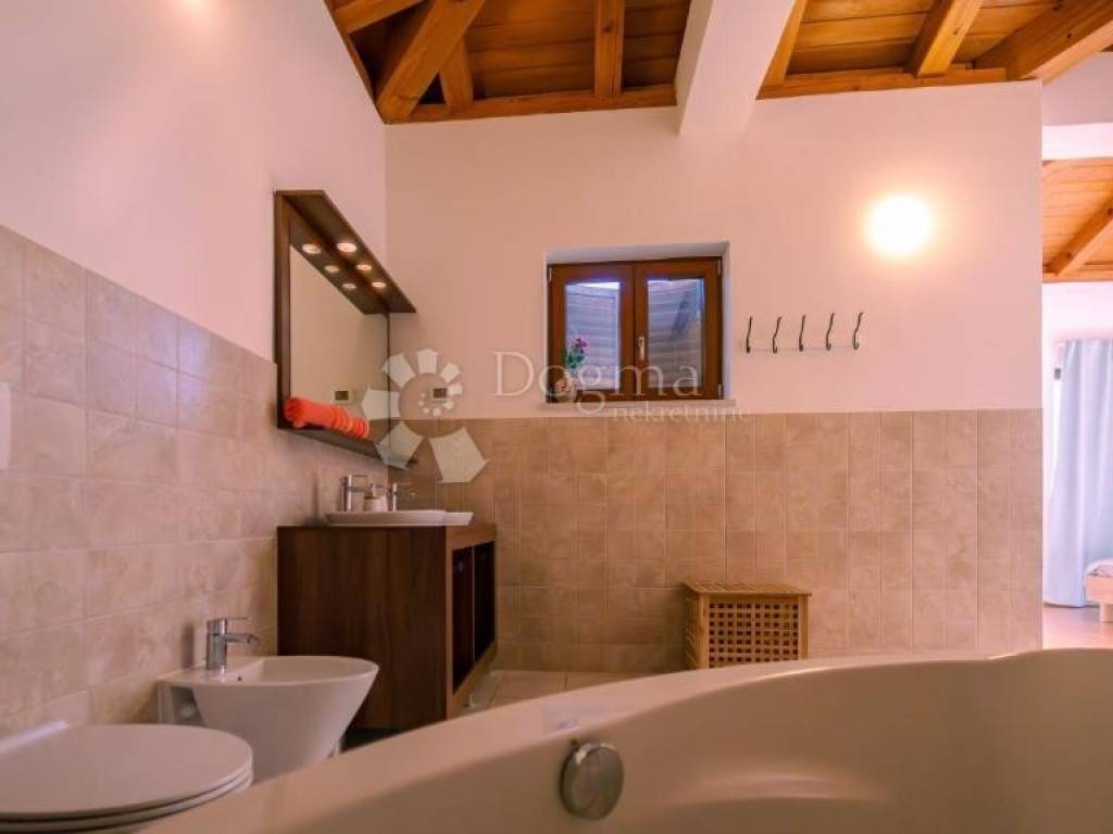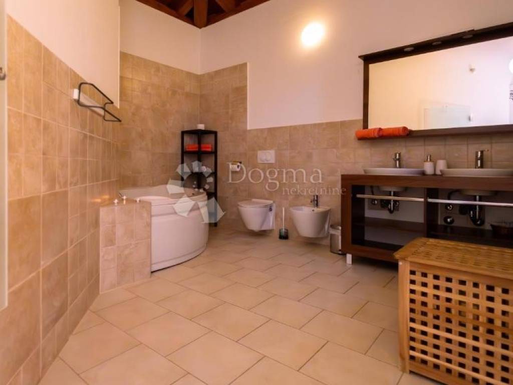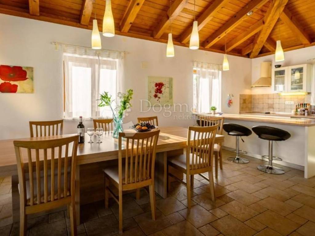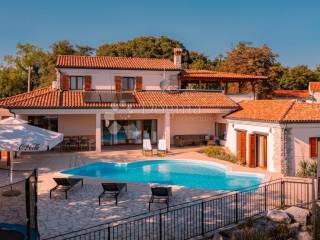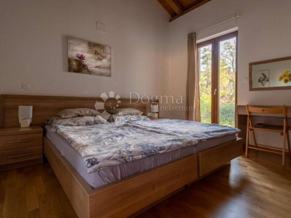Detached, fully furnished villa of 400m2 with a large garden of 2350 m2 GROUND FLOOR: large living room, dining room, kitchen, toilet, two bedrooms with bathrooms, access to the pool and garden. FIRST FLOOR: two bedrooms with bathrooms, terrace The house has its own 13KWH solar power plant, all preparations for underfloor heating with a heat pump and for a SPA in the basement (for steam, Finnish sauna and jacuzzi) Heated pool 40 m2, semicircular part intended for children The villa faces the forest without the possibility of further construction Possibility of a favorable purchase of an additional plot next to the house, which would then expand the land to over 3000m2 For a viewing and more information, please contact us: M. +385 91 732 55 77 M. +385 99 721 03 95