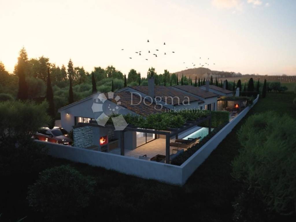 Three attractive terraced houses are for sale, each featuring a private pool, dedicated parking space, and additional shared parking at the end of the plot. Nestled in a quiet setting between luxury villas and a lush olive grove, these homes offer the perfect combination of comfort, functionality, and contemporary design.