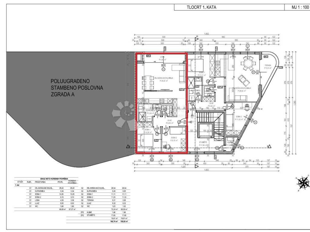 We proudly present a modern apartment located in a mixed-use residential and commercial building in the heart of Tar, in a peaceful and attractive location offering a stunning sea view. The apartment is part of a high-quality new development consisting of 12 residential units and two commercial spaces, spread over four floors ground floor and three upper floors.