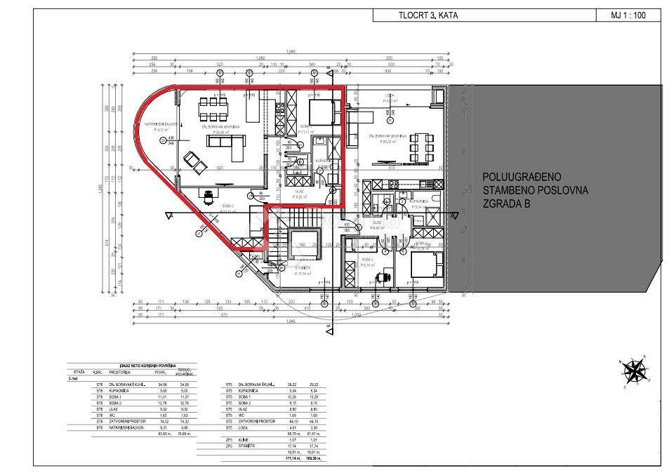 A modern apartment is available in a residential-commercial building located in the very center of Tar, in an attractive and peaceful location with a beautiful sea view. The apartment is part of a high-quality new development consisting of 12 residential units and two commercial spaces, spread over four floors ground floor and three upper floors.