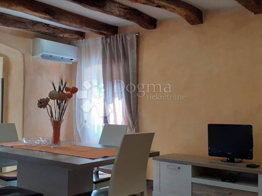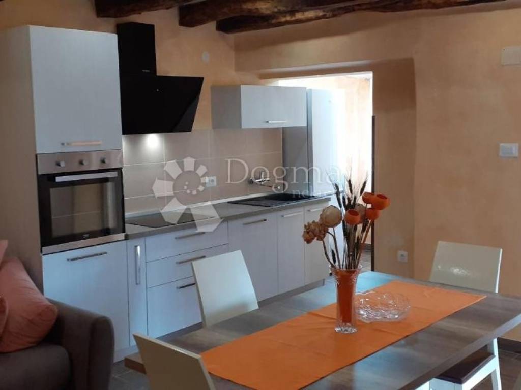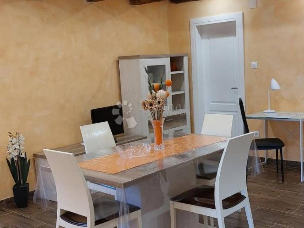 A house with a total area of 109 m is for sale, located in a quiet village just a 5-minute drive from Pazin. The property consists of a ground floor and an upper floor. The ground floor requires renovation, but offers excellent potential for additional residential or commercial space. The ground floor also includes a storage room that currently serves as a laundry room - the space is functional and in good condition. The upper floor has been completely renovated and consists of a hallway, bathroom, spacious open-space kitchen with dining room and living room, and one bedroom. The interior is decorated in a rustic style, with beautifully visible wooden beams that give the space warmth and character. The apartment is air-conditioned and ready to move in immediately. The house also comes with a building plot of 298 m, which further increases the value and possibilities of using the property - whether for expansion, an additional building or a garden. A great opportunity for those looking for a combination of a quiet location, renovated space and additional potential! For more information and to arrange a viewing, please feel free to contact us. STEFANO PERUŠKO LICENSED AGENT Mobile 099/721-0395 stefano.perusko@dogma-nekretnine.com KRISTINA BENČIĆ Mediation Assistant Contact: +385981923830 kristina.bencic@dogma-nekretnine.com