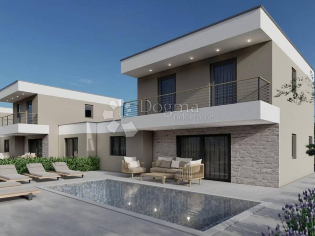 For sale modern semi-detached house with swimming pool Žbandaj, Poreč This quality semi-detached house is located in the quiet village of Žbandaj, just 7 km from the center of Poreč and the first beaches. Nearby are some of the most famous beaches in the area, such as the Blue and Green Lagoons, which makes the location ideal for living or tourist rental. The house consists of a ground floor and an upper floor. The ground floor has a storage room, hallway, guest toilet, bedroom with private bathroom, and an open space of the living room, dining room and kitchen with access to the sun deck and pool. Upstairs there are two bedrooms with access to a shared balcony and an additional bathroom. Additional features: - underfloor heating throughout the house via a heat pump - air conditioning in all rooms - ceramics and sanitary ware included in the price, with the possibility of choosing - PVC joinery in anthracite color - two parking spaces Functional layout, quality equipment and excellent location make this property an excellent opportunity for living or investment. For more information or to arrange a viewing, please feel free to contact us. STEFANO PERUŠKO LICENSED AGENT Mobile 099/721-0395 stefano.perusko@dogma-nekretnine.com KRISTINA BENČIĆ Mediation Assistant Contact: +385981923830 kristina.bencic@dogma-nekretnine.com