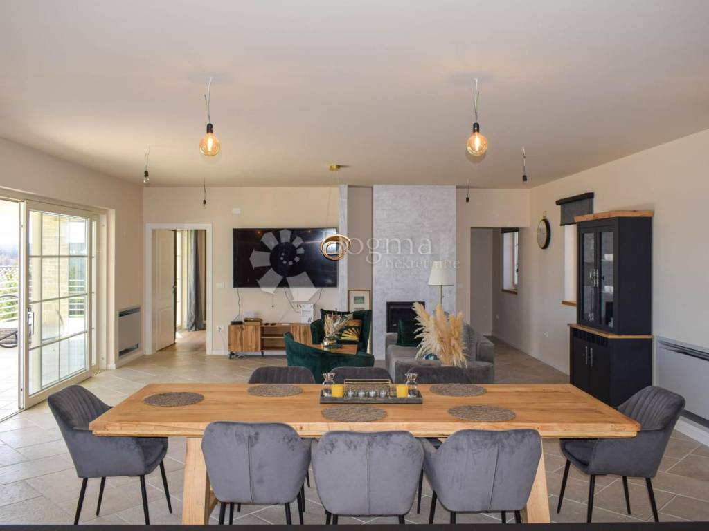 For sale is an exceptionally modern and luxurious villa located in a peaceful elevated part of Vižinada, covering 300 m within a spacious plot of 1,250 m. This villa offers an impressive panoramic view of the natural surroundings, providing a unique sense of privacy and tranquility while being close to all essential amenities.