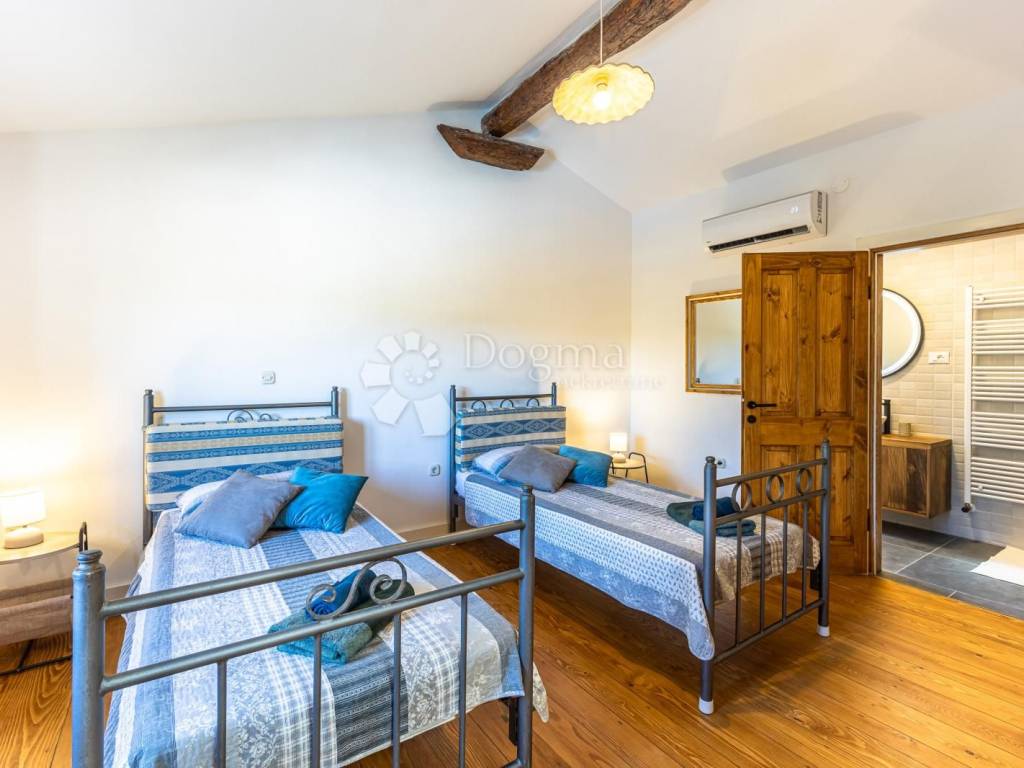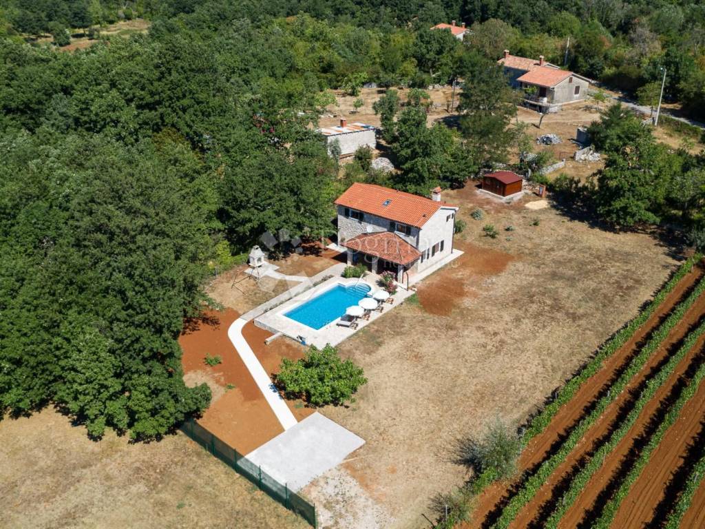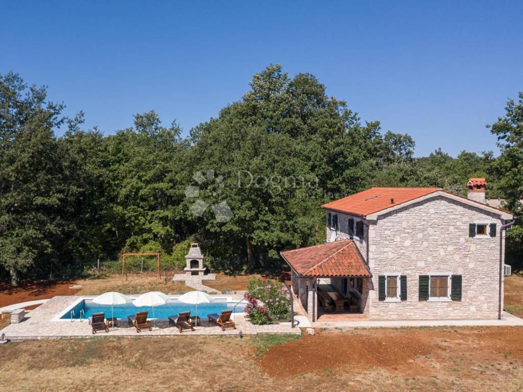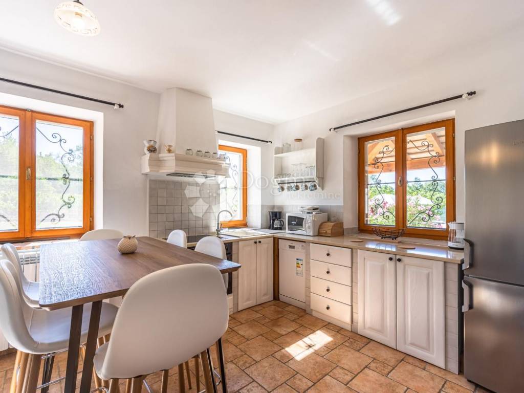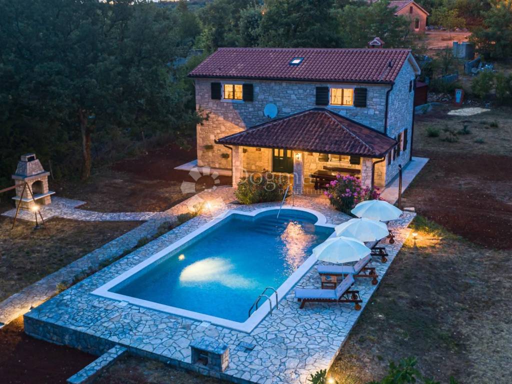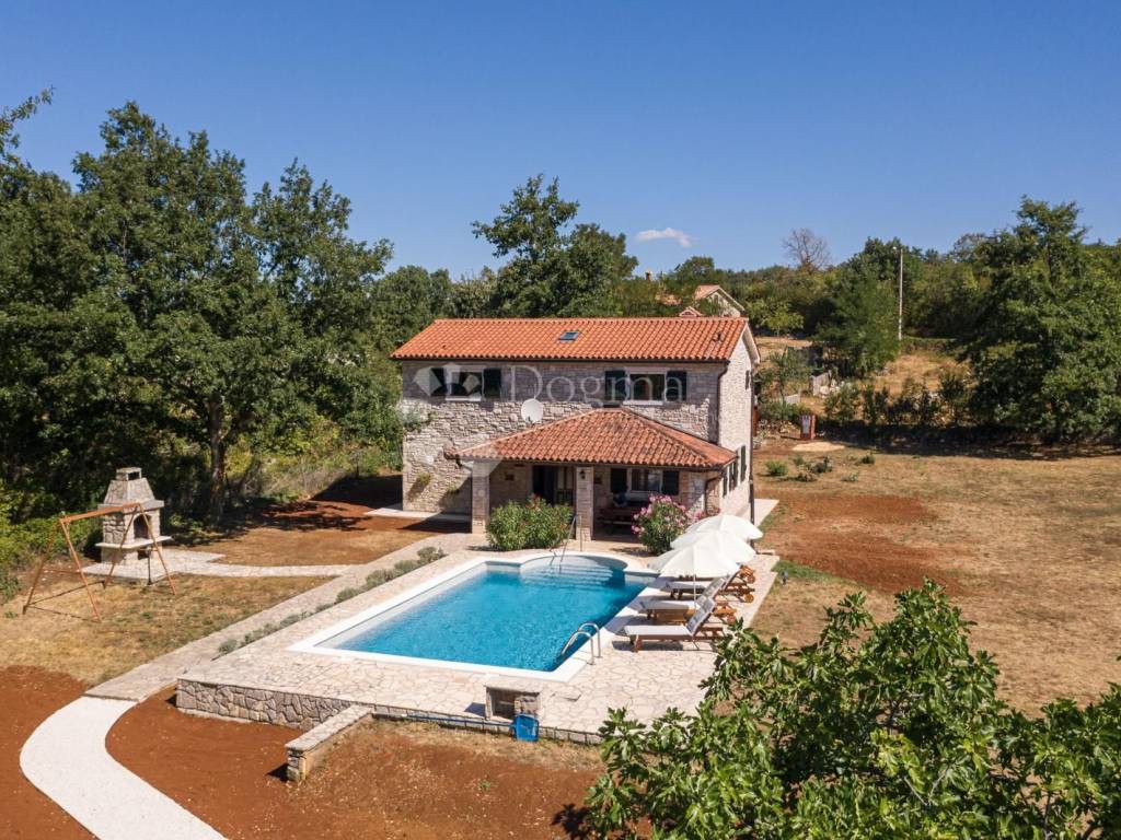 For sale is a beautiful stone villa with a swimming pool located in a quiet village near Labin, with a mesmerizing view of the vineyards and surrounding greenery. The villa exudes authentic rustic Istrian charm and offers the perfect blend of tradition and modern comfort. On the ground floor there is a kitchen, dining room and a spacious living room with a wood-burning fireplace, as well as one bedroom with its own bathroom, a separate toilet and a laundry room. On the first floor there are two additional bedrooms, each with its own bathroom. The villa is equipped with four air conditioners and central heating via radiators, ensuring a pleasant stay throughout the year. The spacious yard offers a swimming pool, barbecue and tool shed, perfect for relaxing and socializing. The distance from the historic town of Labin and the beaches in Rabac makes this property ideal for both family life and tourist rentals.