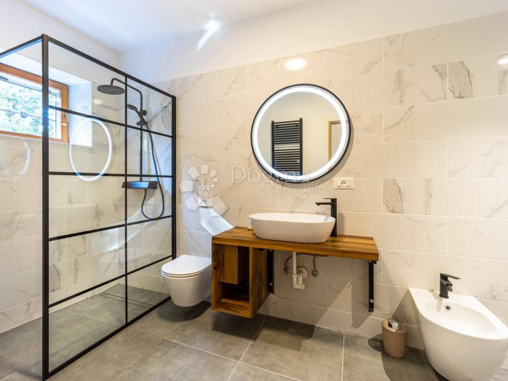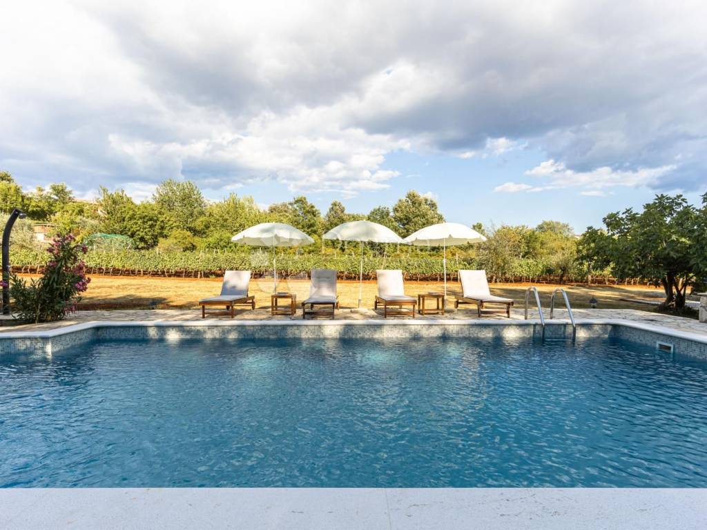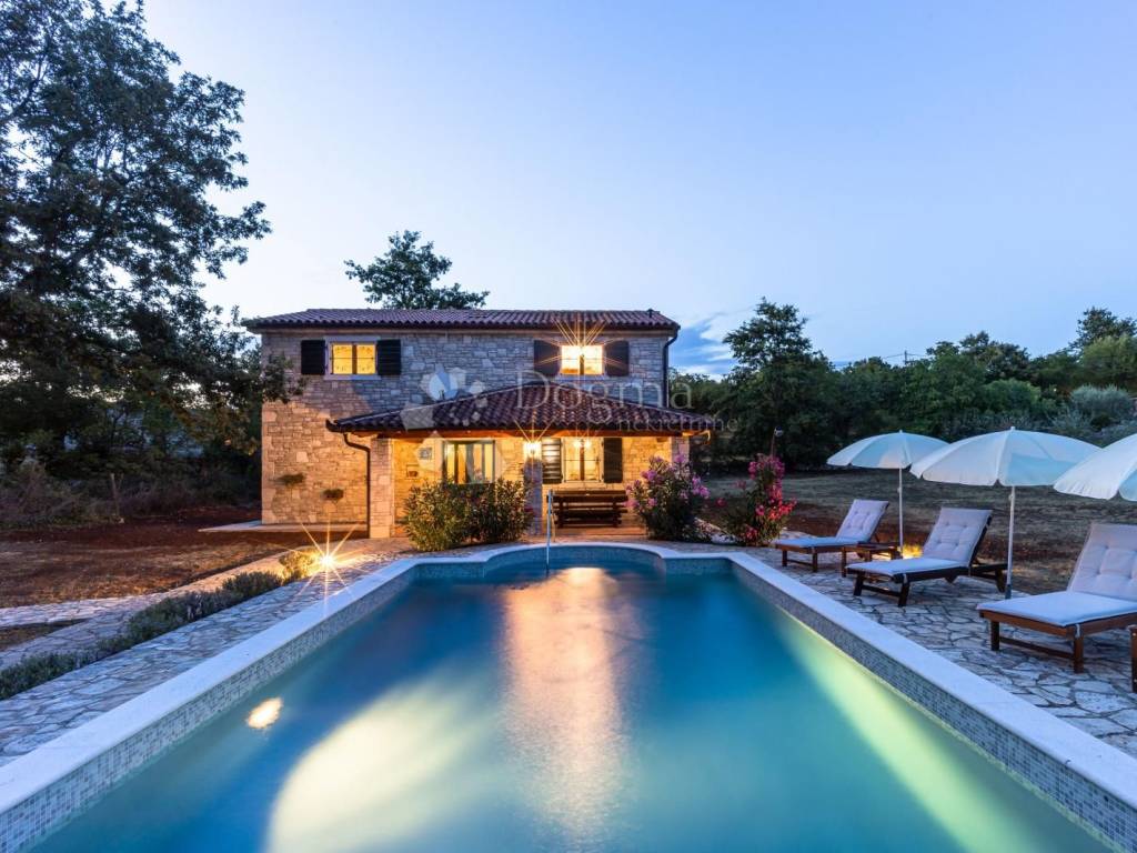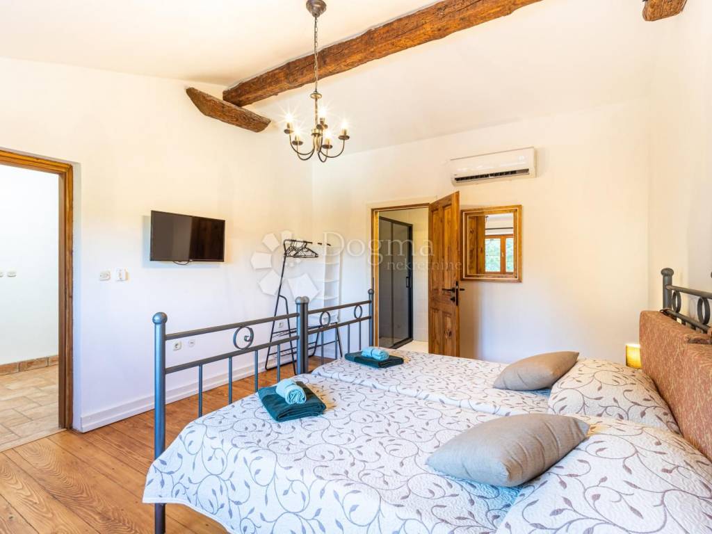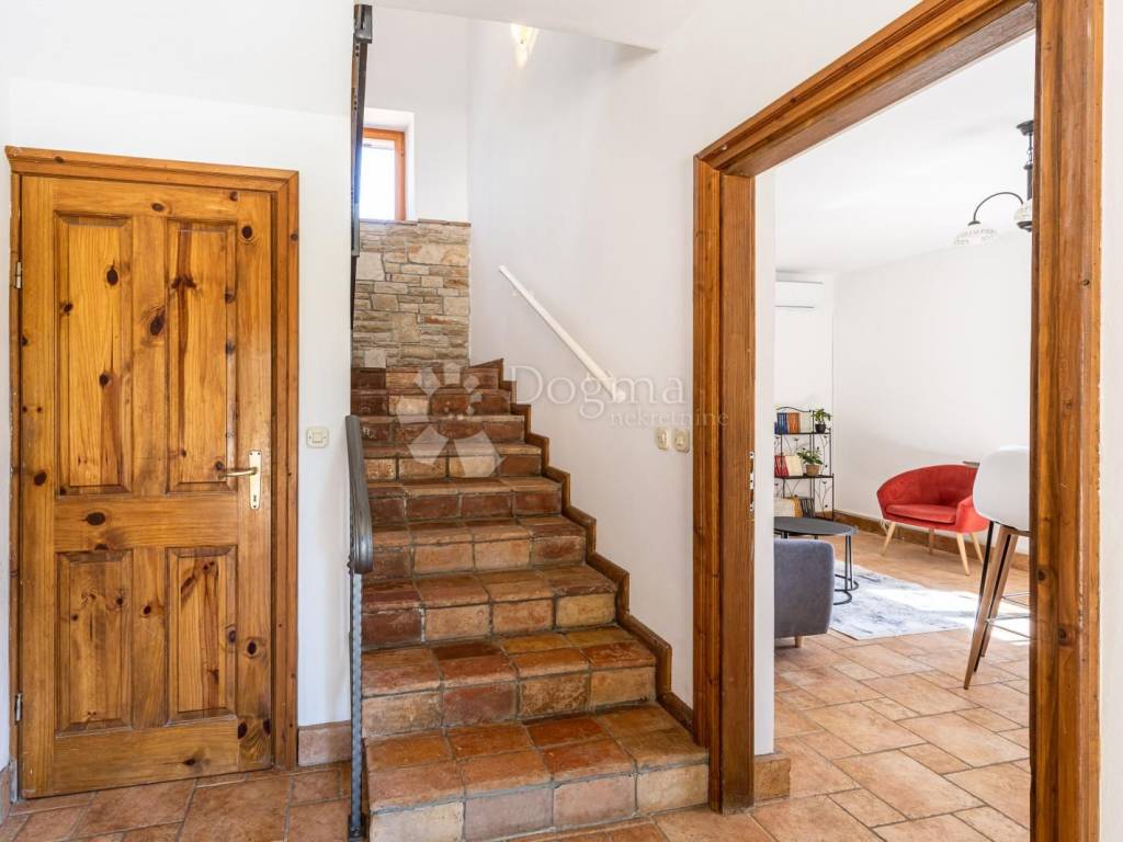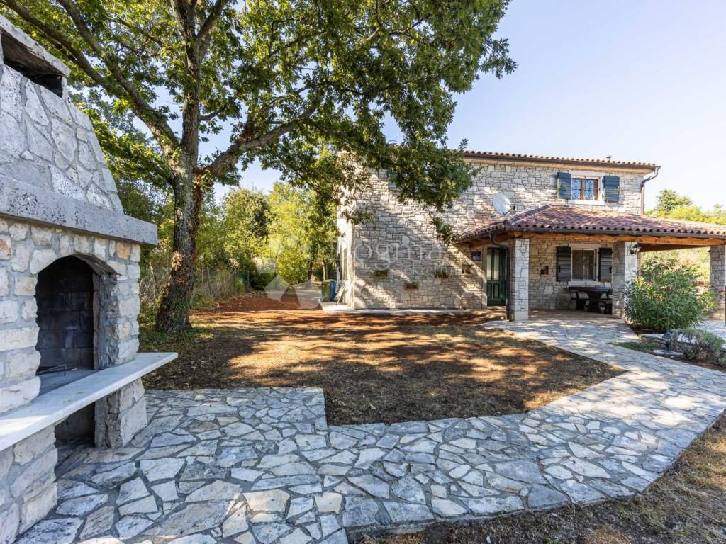 For sale is a beautiful stone villa with a swimming pool located in a quiet village near Labin, with a mesmerizing view of the vineyards and surrounding greenery. The villa exudes authentic rustic Istrian charm and offers the perfect blend of tradition and modern comfort. On the ground floor there is a kitchen, dining room and a spacious living room with a wood-burning fireplace, as well as one bedroom with its own bathroom, a separate toilet and a laundry room. On the first floor there are two additional bedrooms, each with its own bathroom. The villa is equipped with four air conditioners and central heating via radiators, ensuring a pleasant stay throughout the year. The spacious yard offers a swimming pool, barbecue and tool shed, perfect for relaxing and socializing. The distance from the historic town of Labin and the beaches in Rabac makes this property ideal for both family life and tourist rentals.