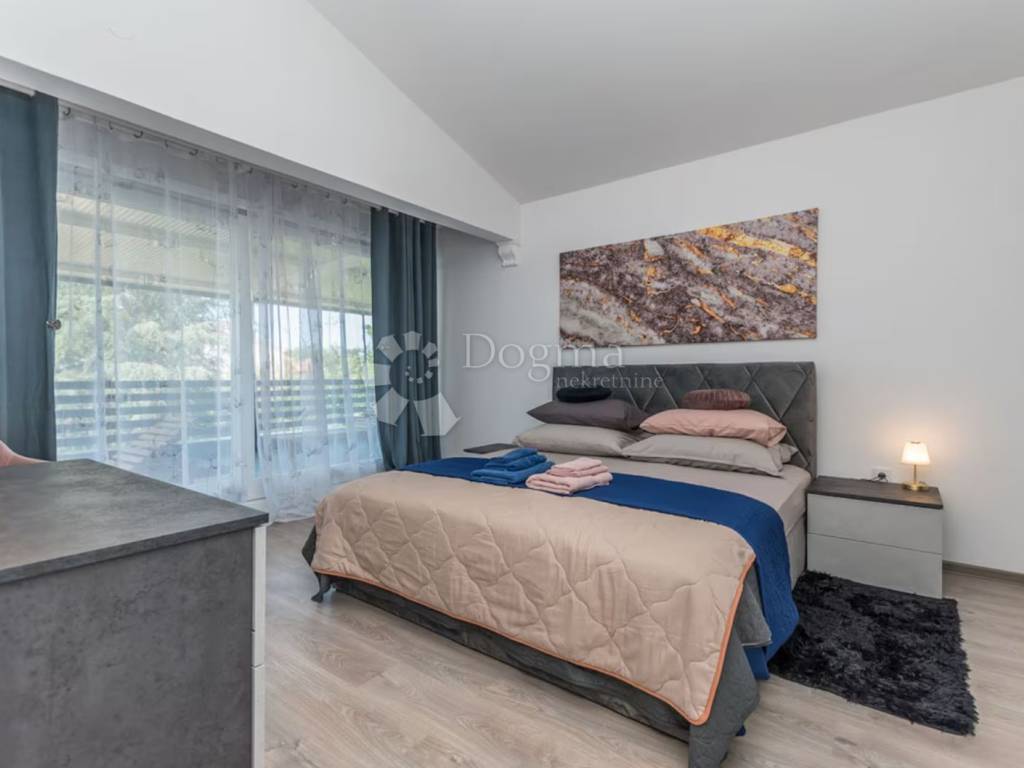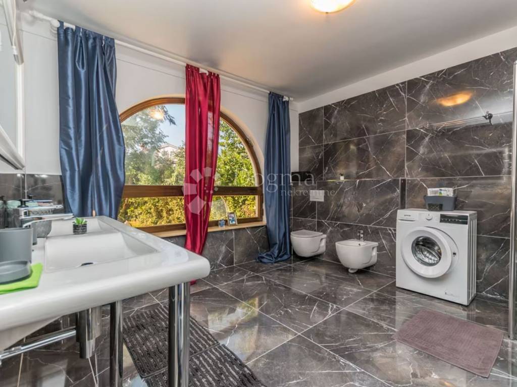 The holiday house is located near Poreč, only 5 km from the sea and the city. With an area of 210 m, this modern and spacious house offers everything you need for a comfortable life or vacation. On the ground floor there is a hallway, a storage room, a fully equipped kitchen with a dining room, a living room, two bedrooms and a bathroom with a shower. Upstairs there are three additional bedrooms, a bathroom with a shower and a large terrace with a view of the town and the sea in the distance. The land of 1090 m offers enough space to enjoy the outdoors, with a swimming pool, barbecue and parking spaces, and the entire area is fenced to provide complete privacy.