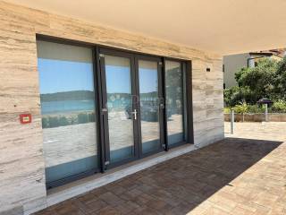 The apartment is located on the ground floor of a smaller residential building with a total of seven units. The building is situated in the first row to the sea.