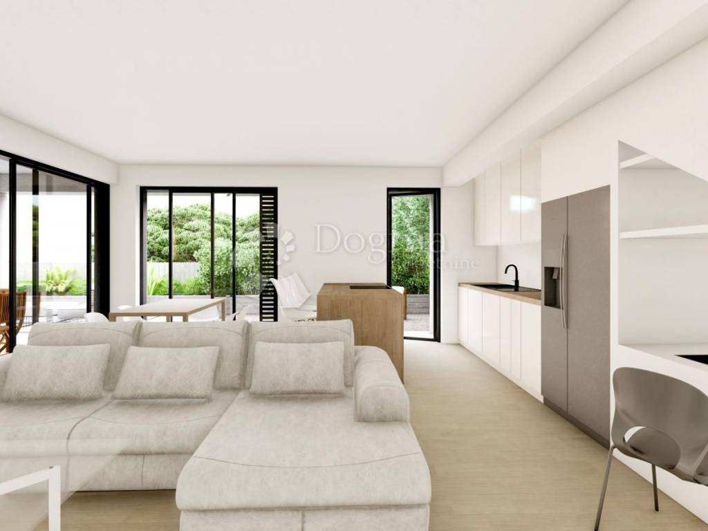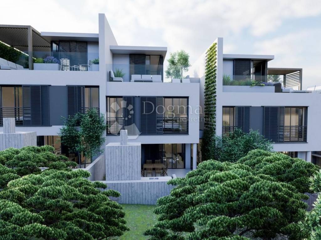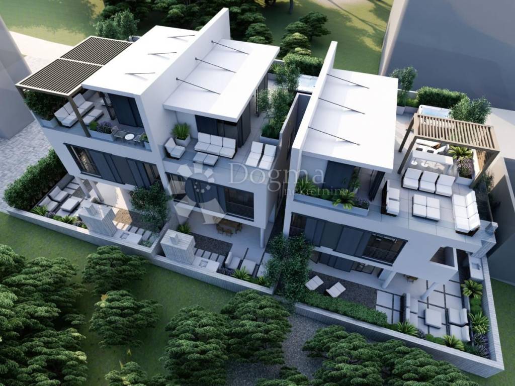 The project offers the epitome of luxury living, seamlessly blending with nature and the sea. To ensure comfort year-round, the architecture incorporates underfloor heating throughout the ground floor and all bathrooms, controlled by WiFi thermostats, along with individual room climate control through WiFi-enabled air conditioning. The exterior joinery consists of anthracite-colored aluminum glazed wings, complemented by sun protection provided by anthracite-colored aluminum sliding blinds. All windows and balcony doors feature insulating glass for energy efficiency, while the interior joinery is wooden. The building includes three residential units, staggered and cascaded to ensure privacy in both ground floor gardens and rooftop terraces, achieved through the construction of walls between units.