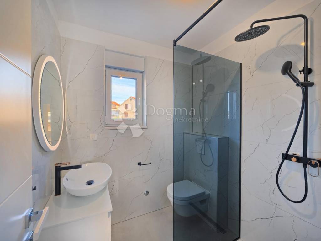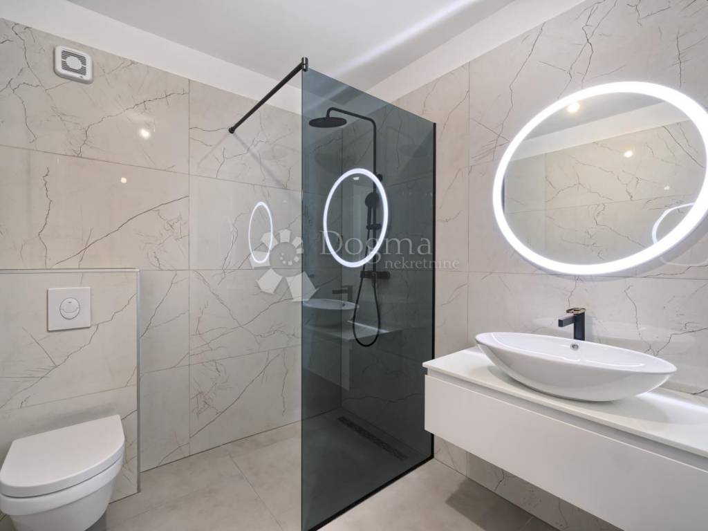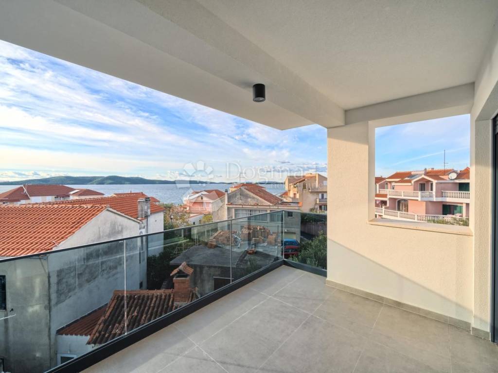 The apartment has a total living area of 110.84 m2 and consists of a spacious living room with a kitchen and dining room, four bedrooms, 3 bathrooms, a guest toilet and two terraces of 11.11 m2 and 10.09 m2 with a wonderful view of the sea.