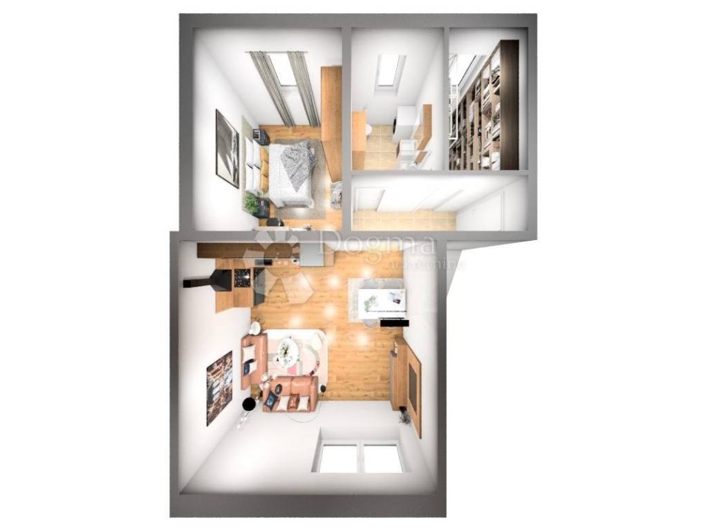 The apartment is located on the 2nd floor of a beautiful building with a pool (shared use) of 8 apartments and consists of an entrance hall, open space living room, kitchen and dining room, bedroom, bathroom, hallway and pantry. The apartment also has 1 parking space.
