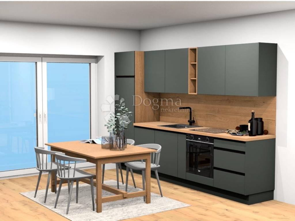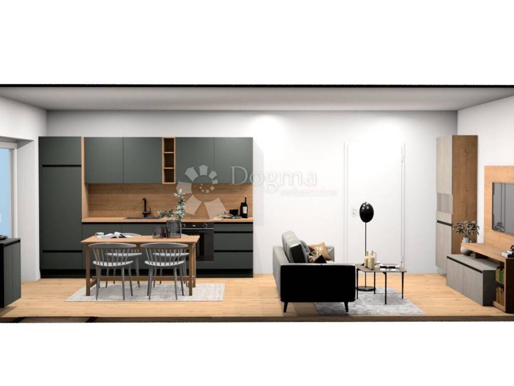 The apartment is located on the ground floor of a beautiful building with 2 apartments and a swimming pool. 2 more connected buildings make up a total of 11 apartments. The apartment consists of an entrance hall, open space living room, kitchen and dining room, bedroom, bathroom and a large terrace with a direct view and direct access to the common pool. The apartment also has 1 parking space.